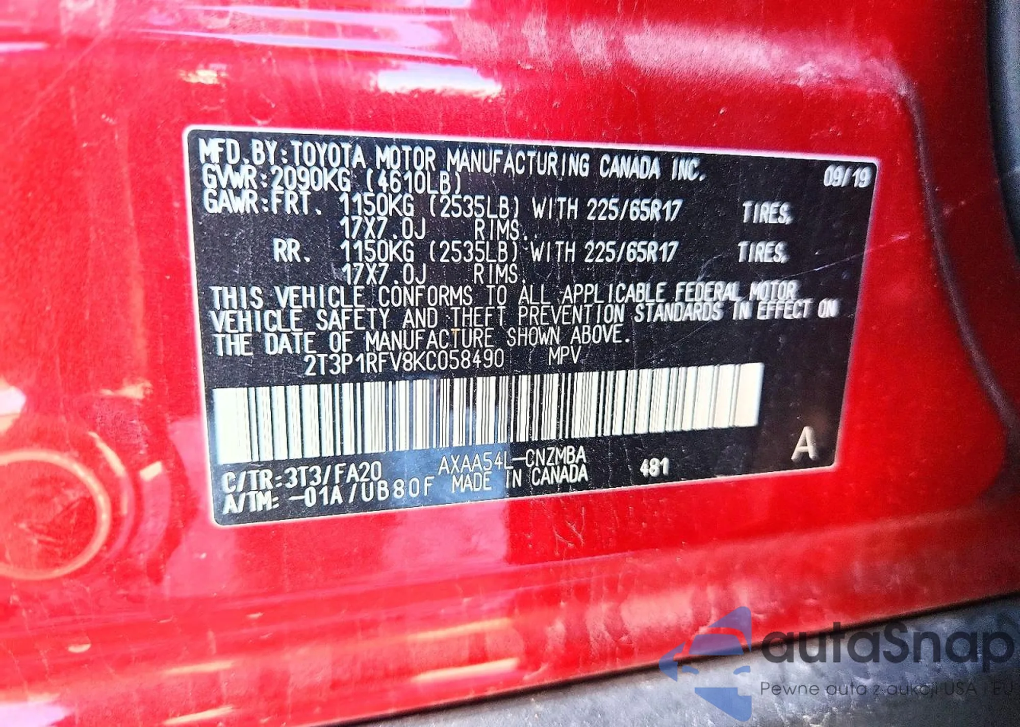 LOT: 75016965 VIN: 2T3P1RFV8KC058490