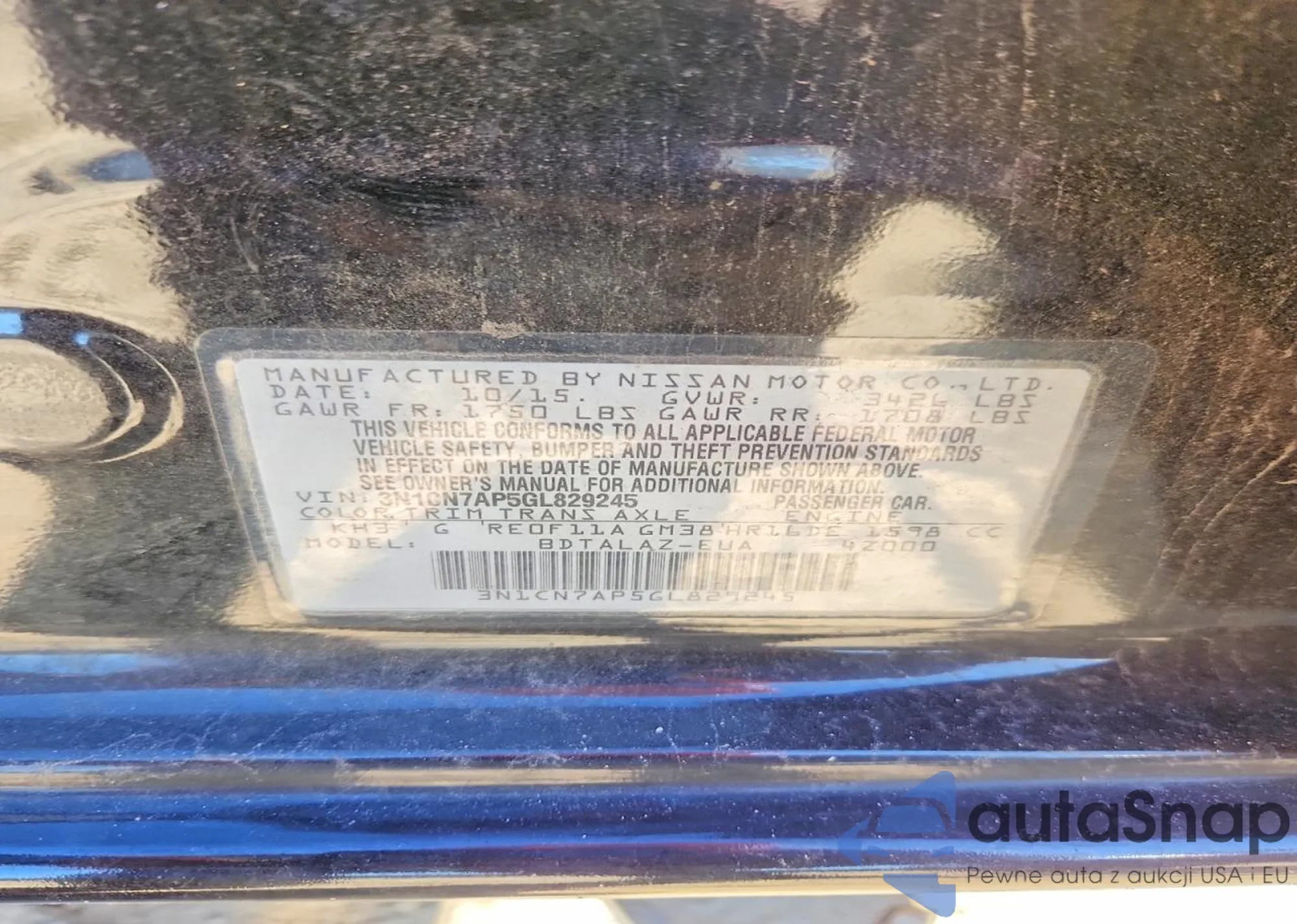 • VIN 3N1CN7AP5GL829245
