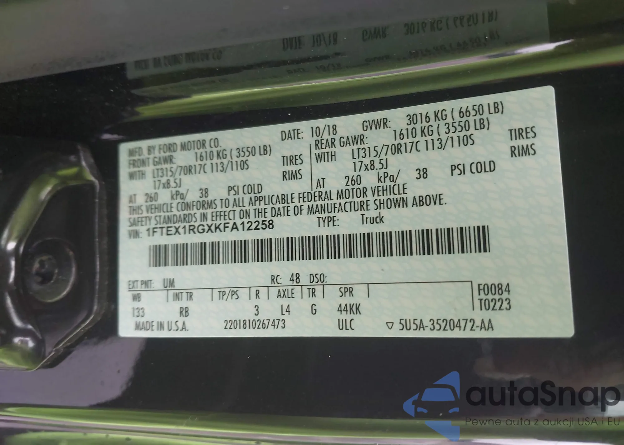 • VIN 1FMCU0E73CKA74315