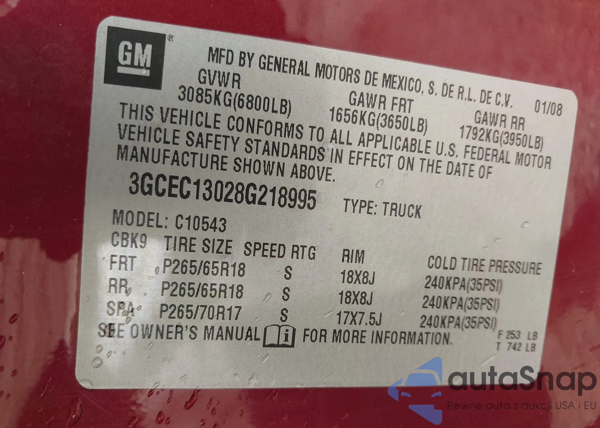 • VIN 3GCEC13028G218995