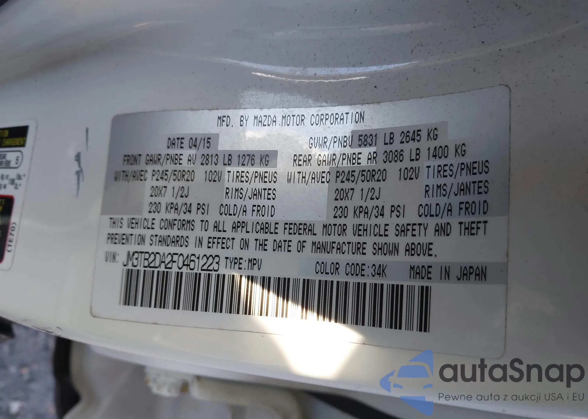 • VIN JM3TB2DA2F0461223