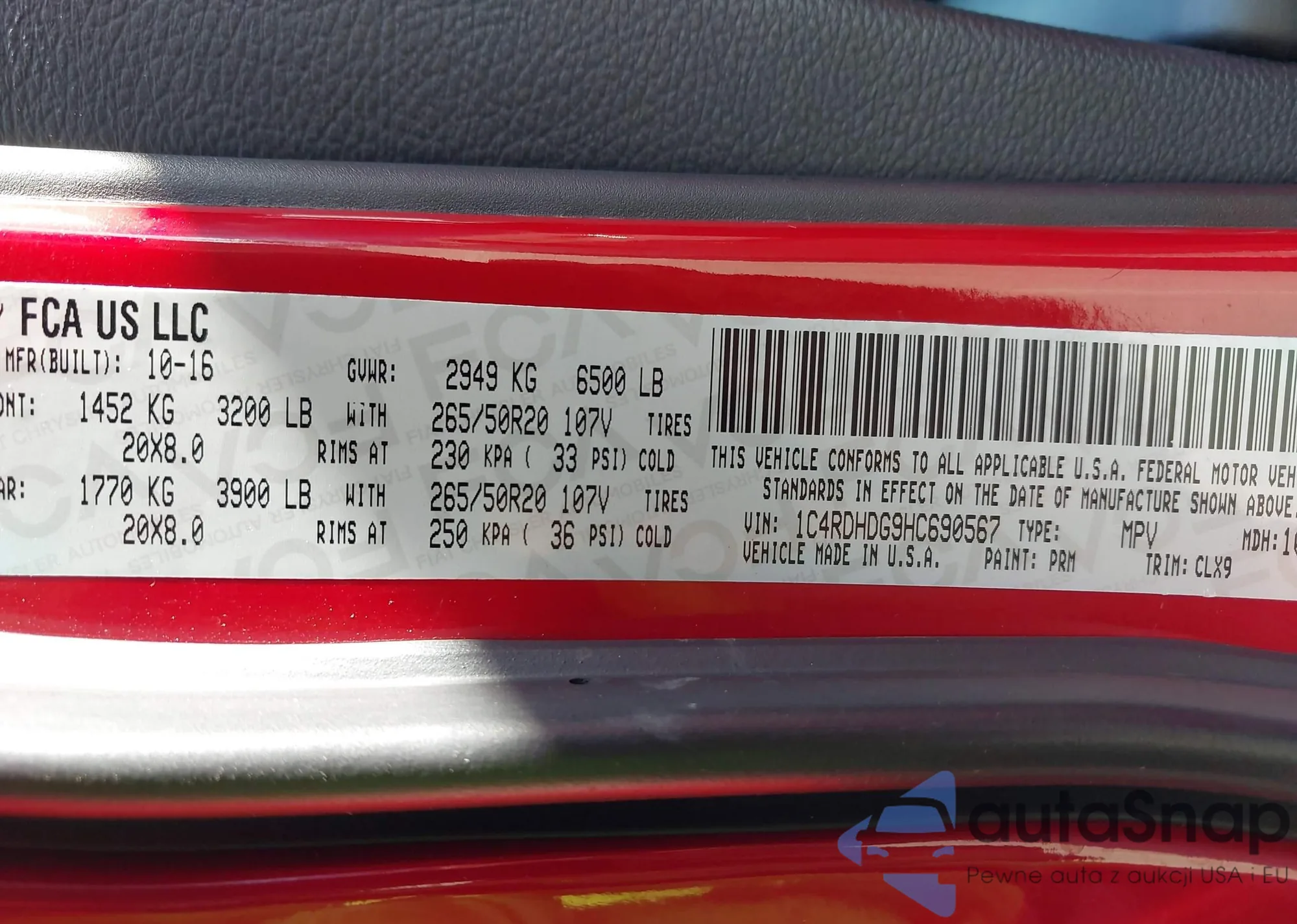 • VIN 1C4RDHDG9HC690567