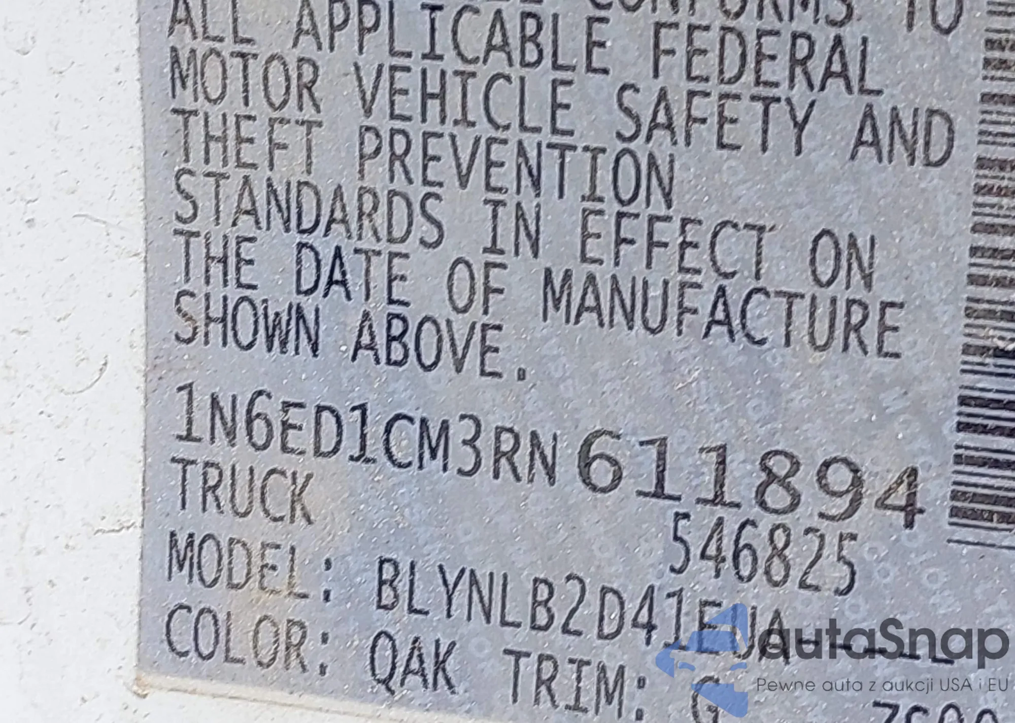 • VIN 1N6ED1CM3RN611894