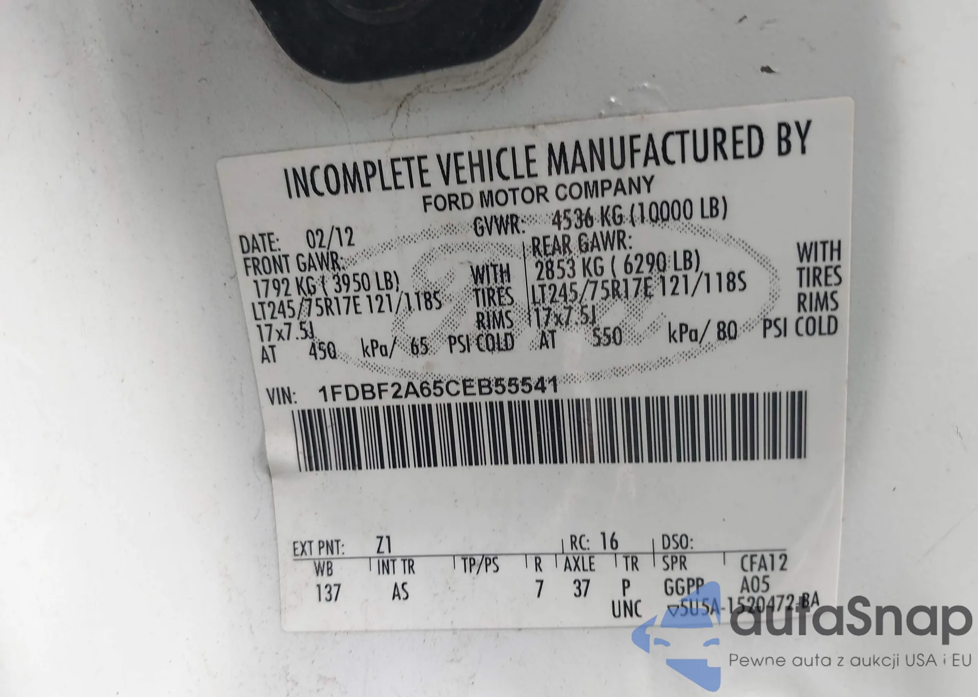 • VIN 1FDBF2A65CEB55541