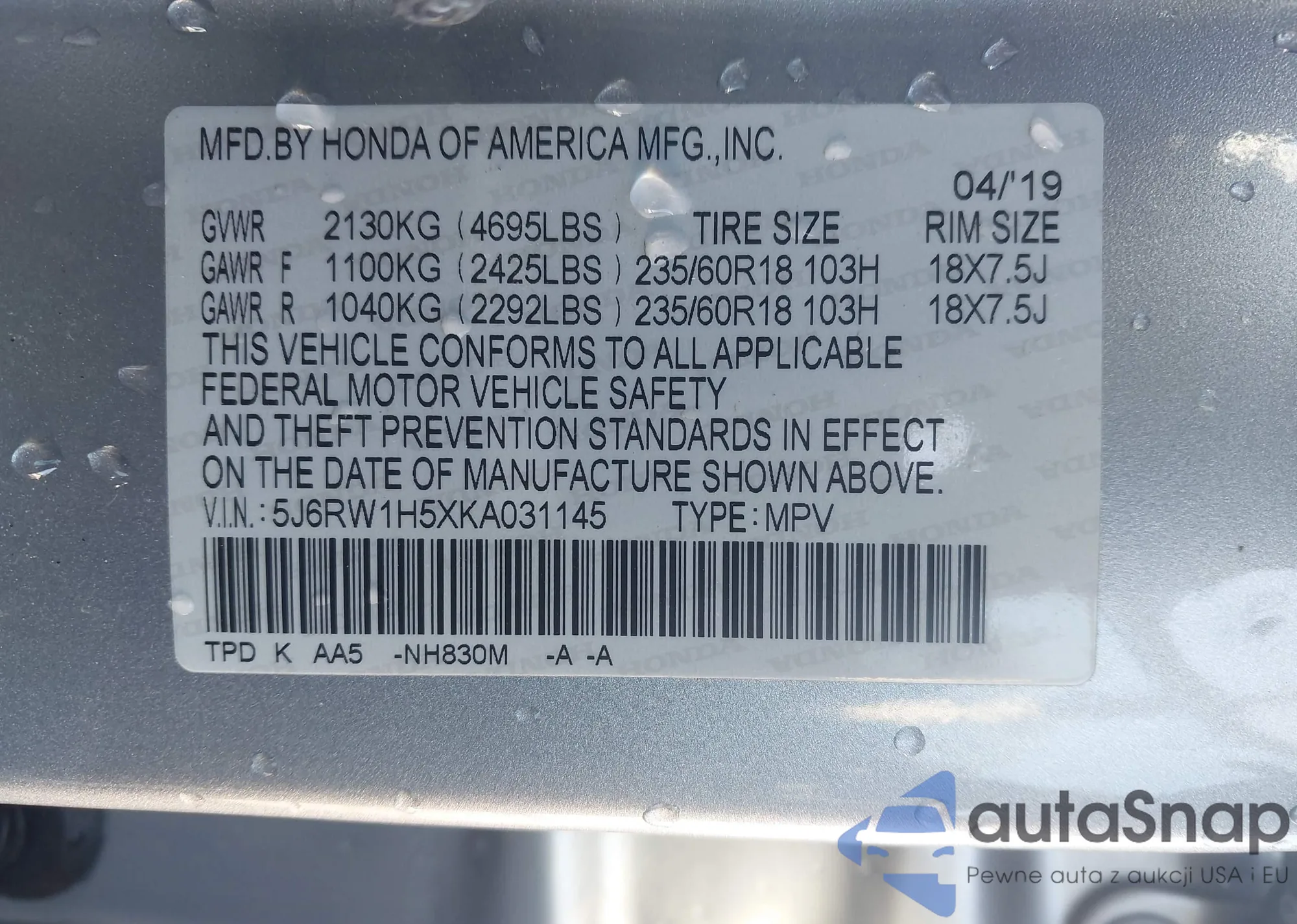 • VIN JN8AT2MV7KW379662