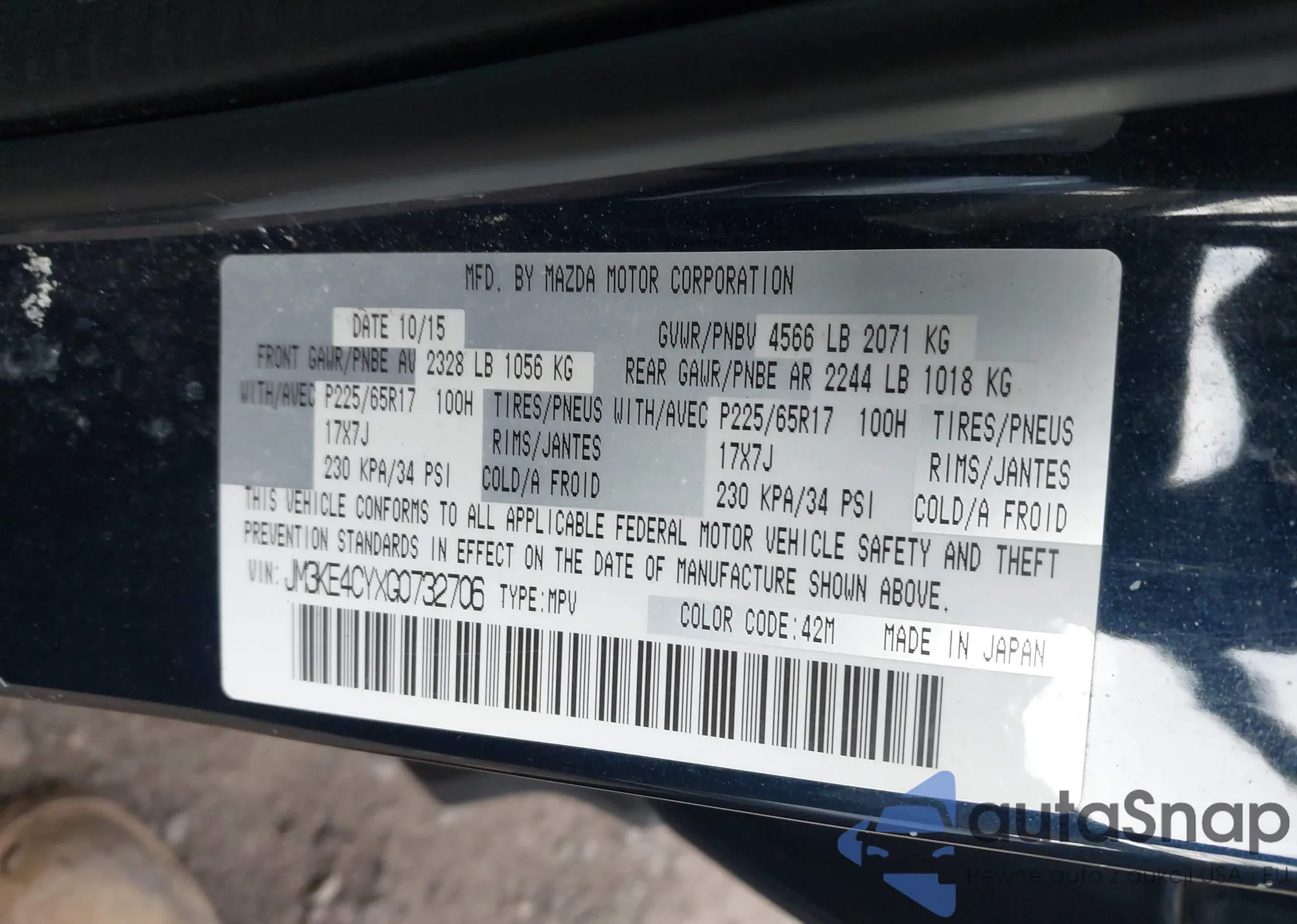 LOT: 44101008 VIN: JM3KE4CYXG0732706