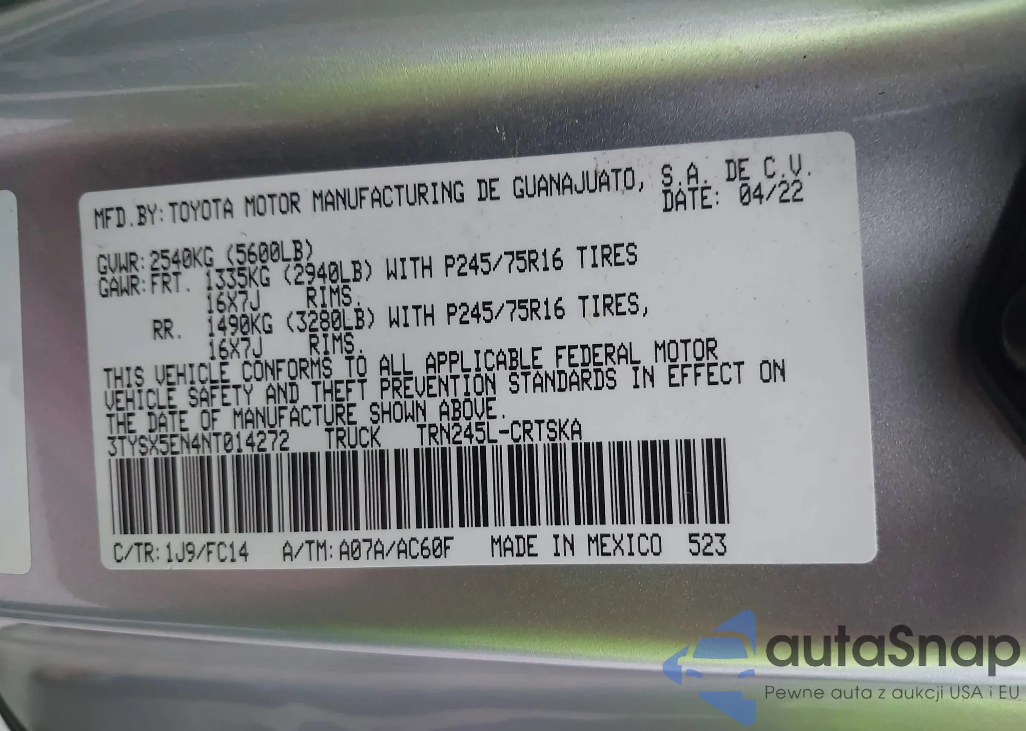 • VIN 5TFAW5F16FX472493
