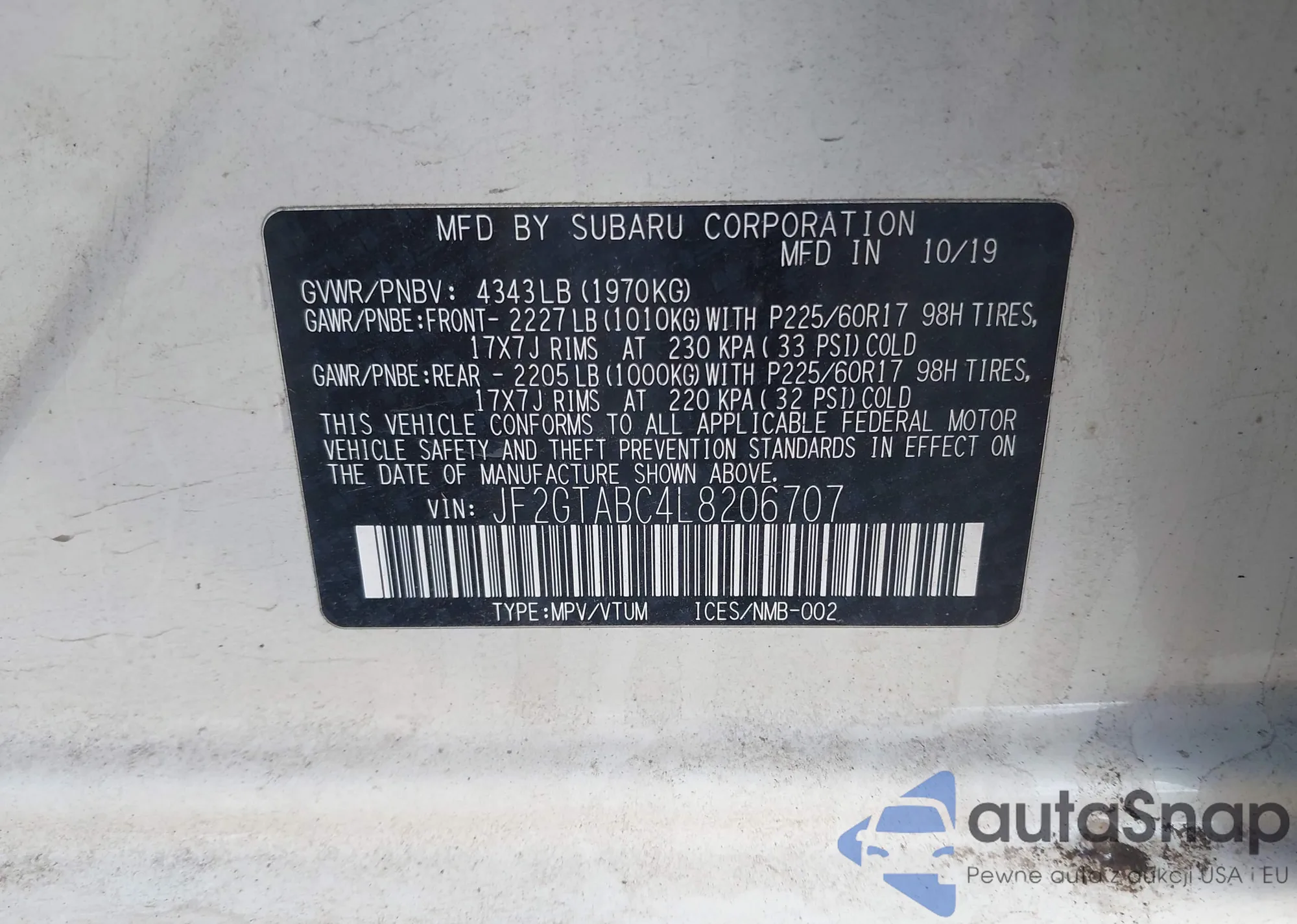 LOT: 44110249 VIN: JF2GTABC4L8206707
