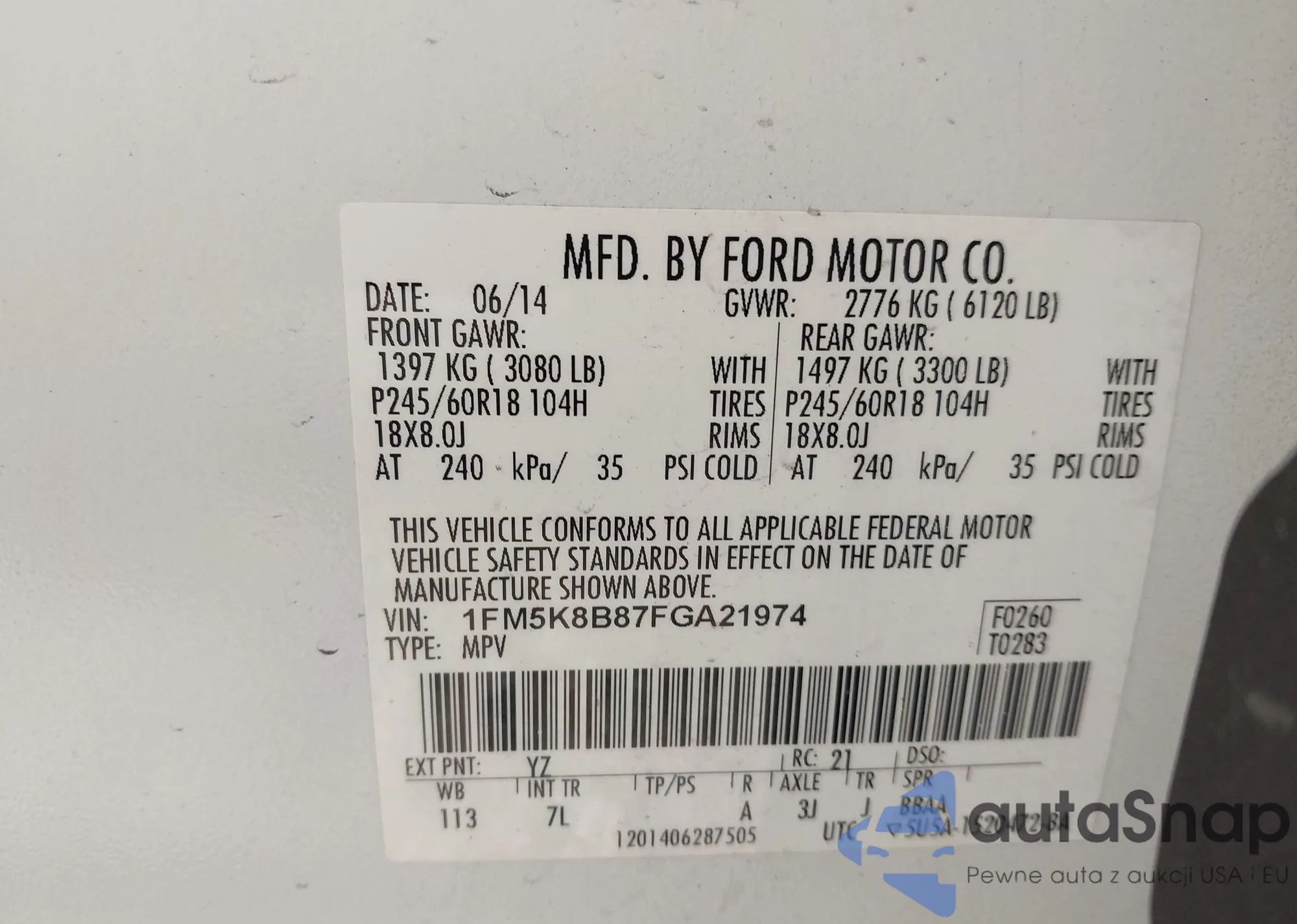 • VIN 1FM5K8B87FGA21974
