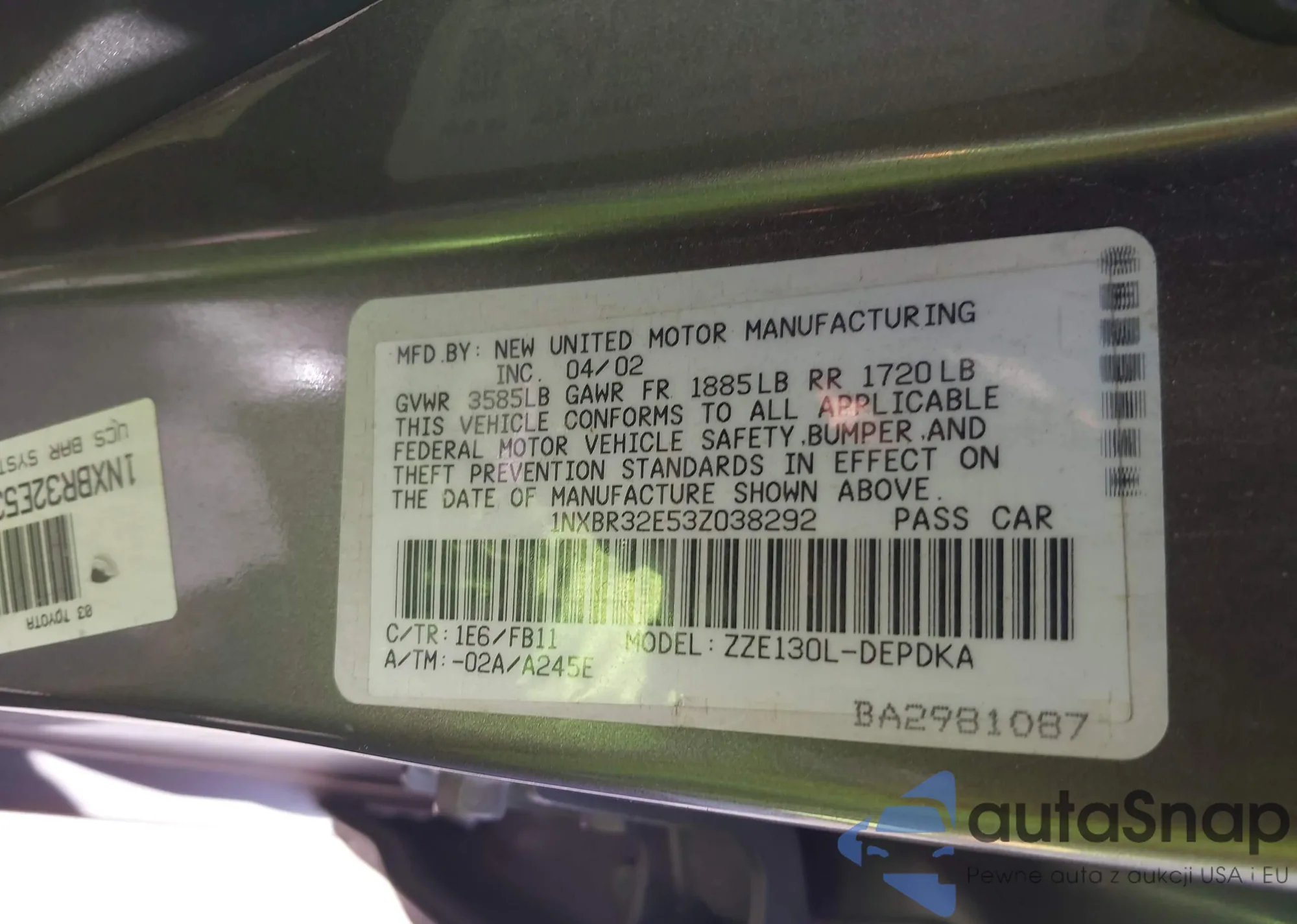 • VIN 1NXBR32E53Z038292