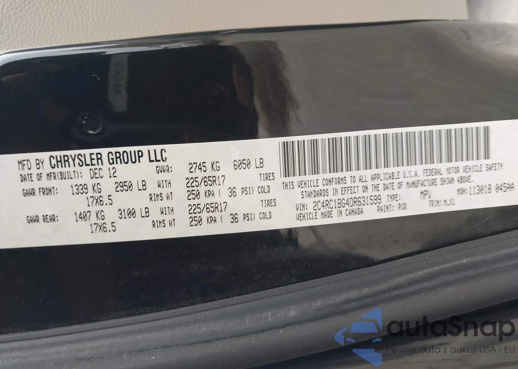 • VIN 2C4RC1BG4DR631599