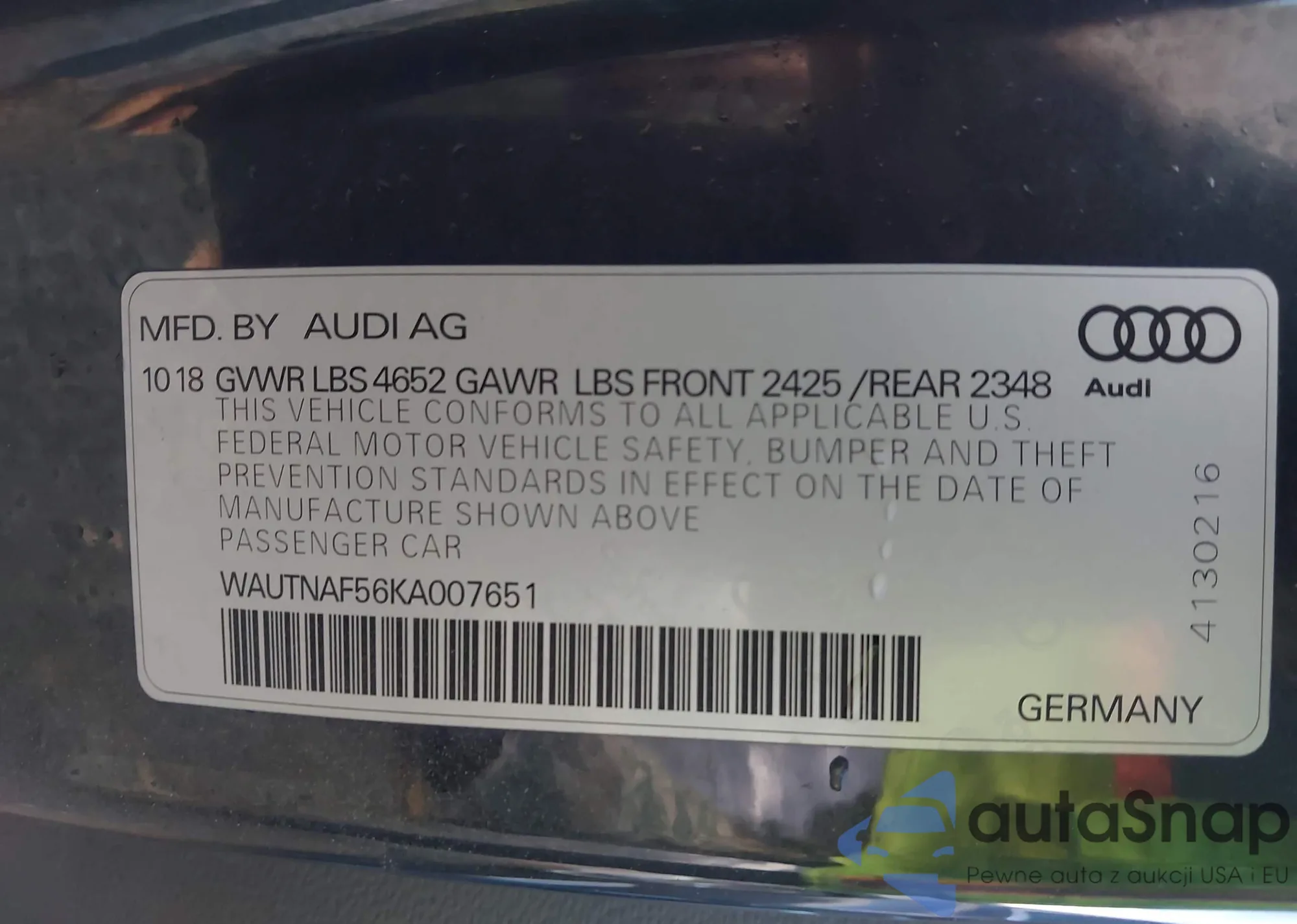 • VIN WAUTNAF56KA007651