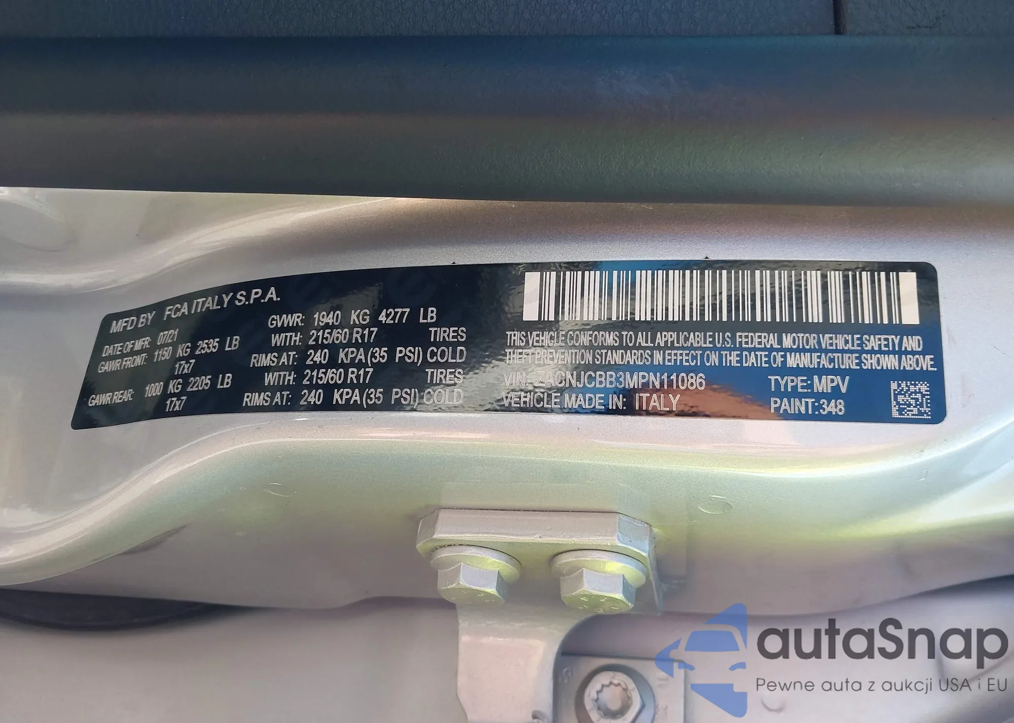 • VIN ZACNJCBB3MPN11086