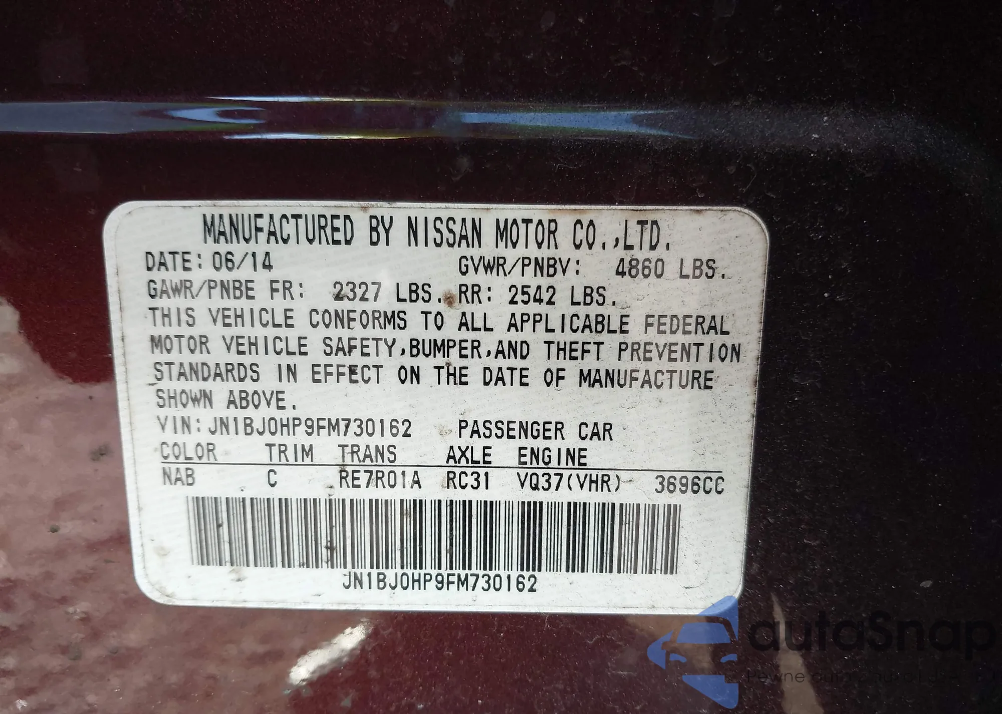 LOT: 44039622 VIN: JN1BJ0HP9FM730162