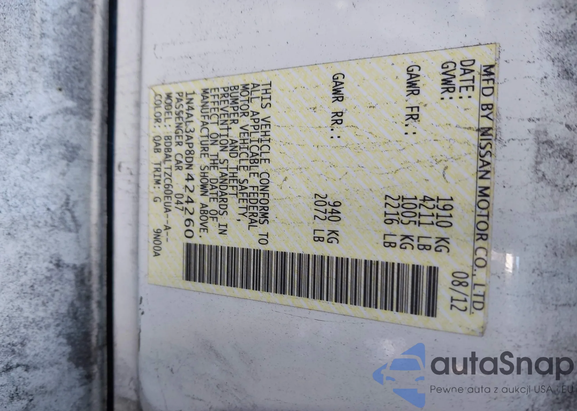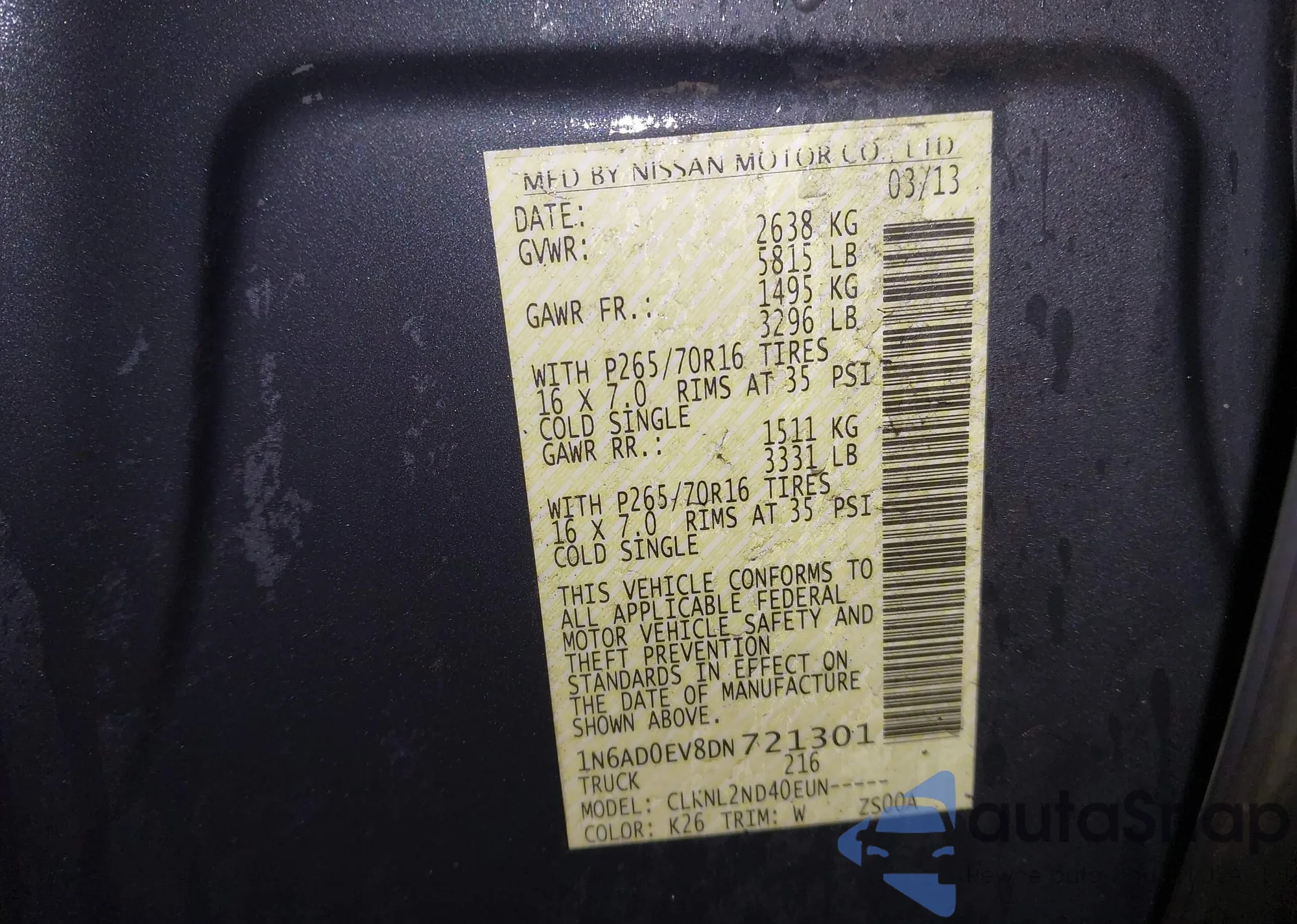 LOT: 43850402 VIN: 1N6AD0EV8DN721301