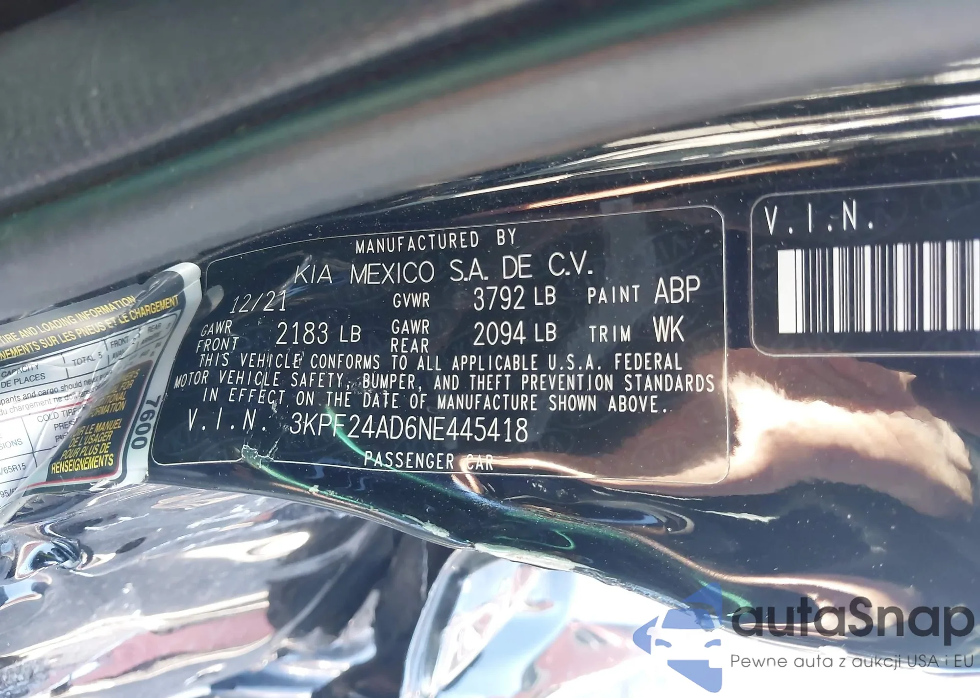 • VIN 3KPF24AD6NE445418