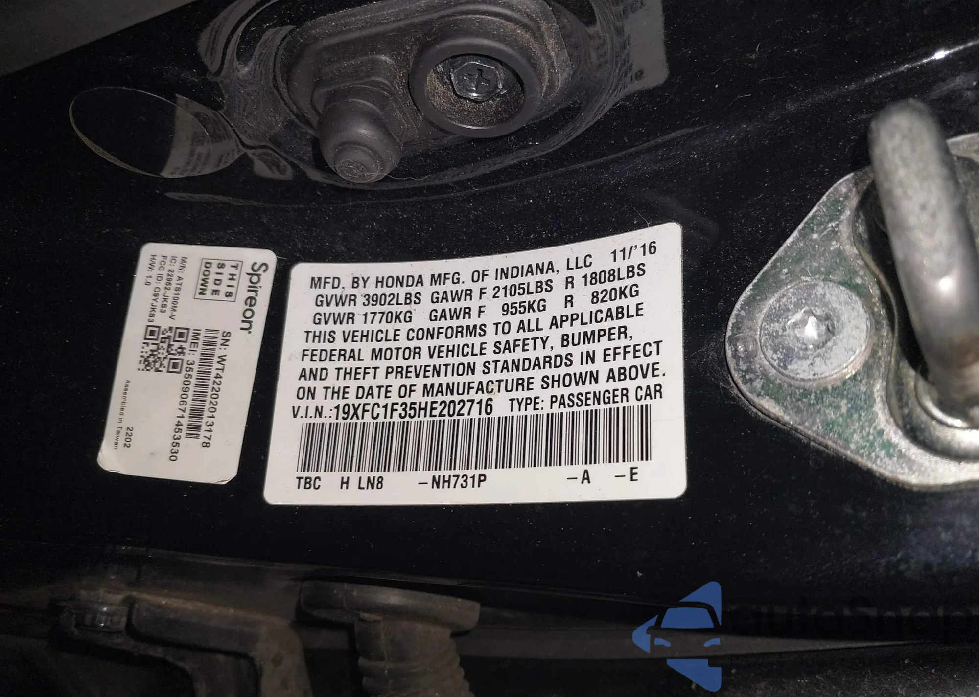 • VIN 19XFC1F35HE202716