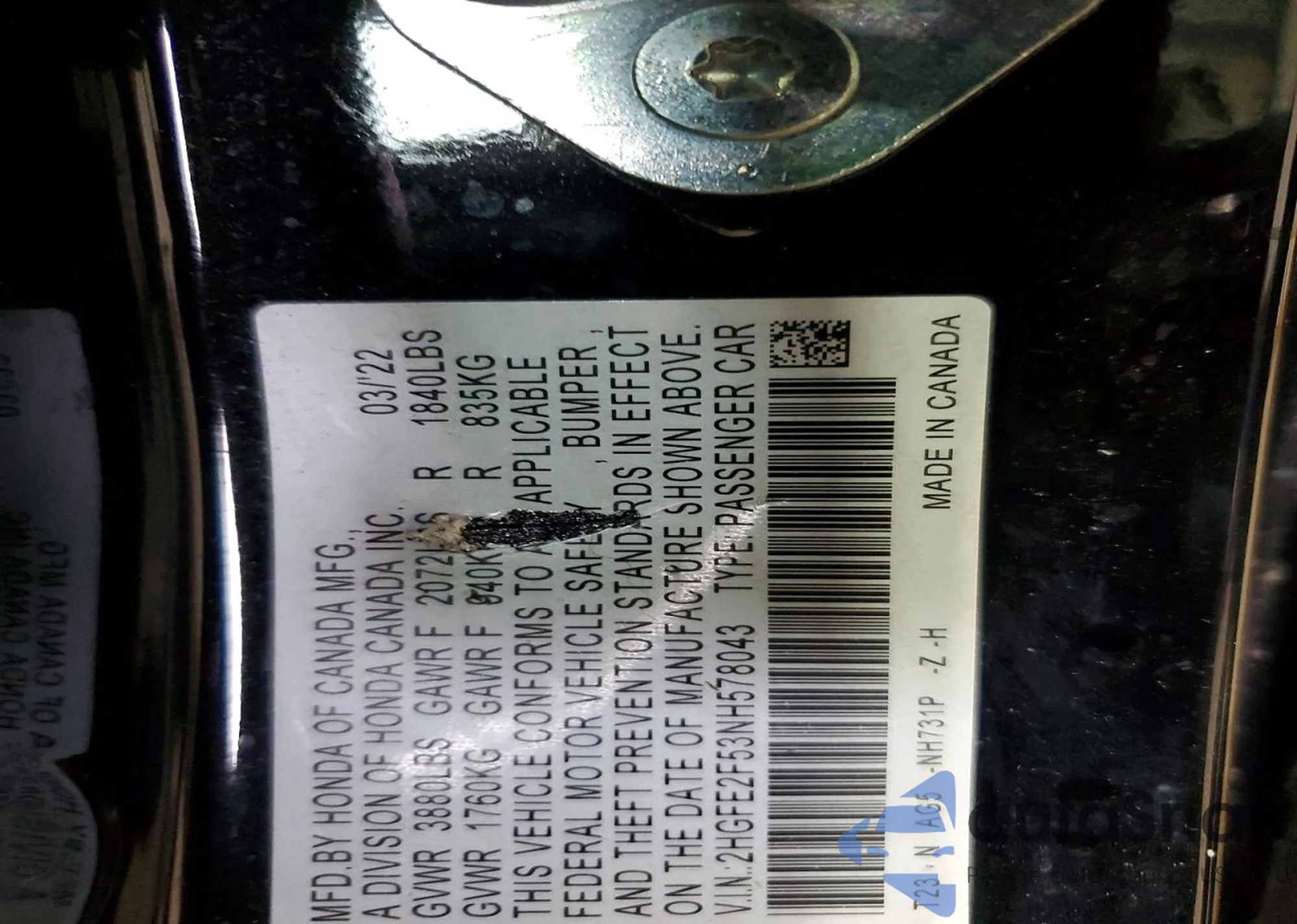 LOT: 73193485 VIN: 2HGFG12846H583774