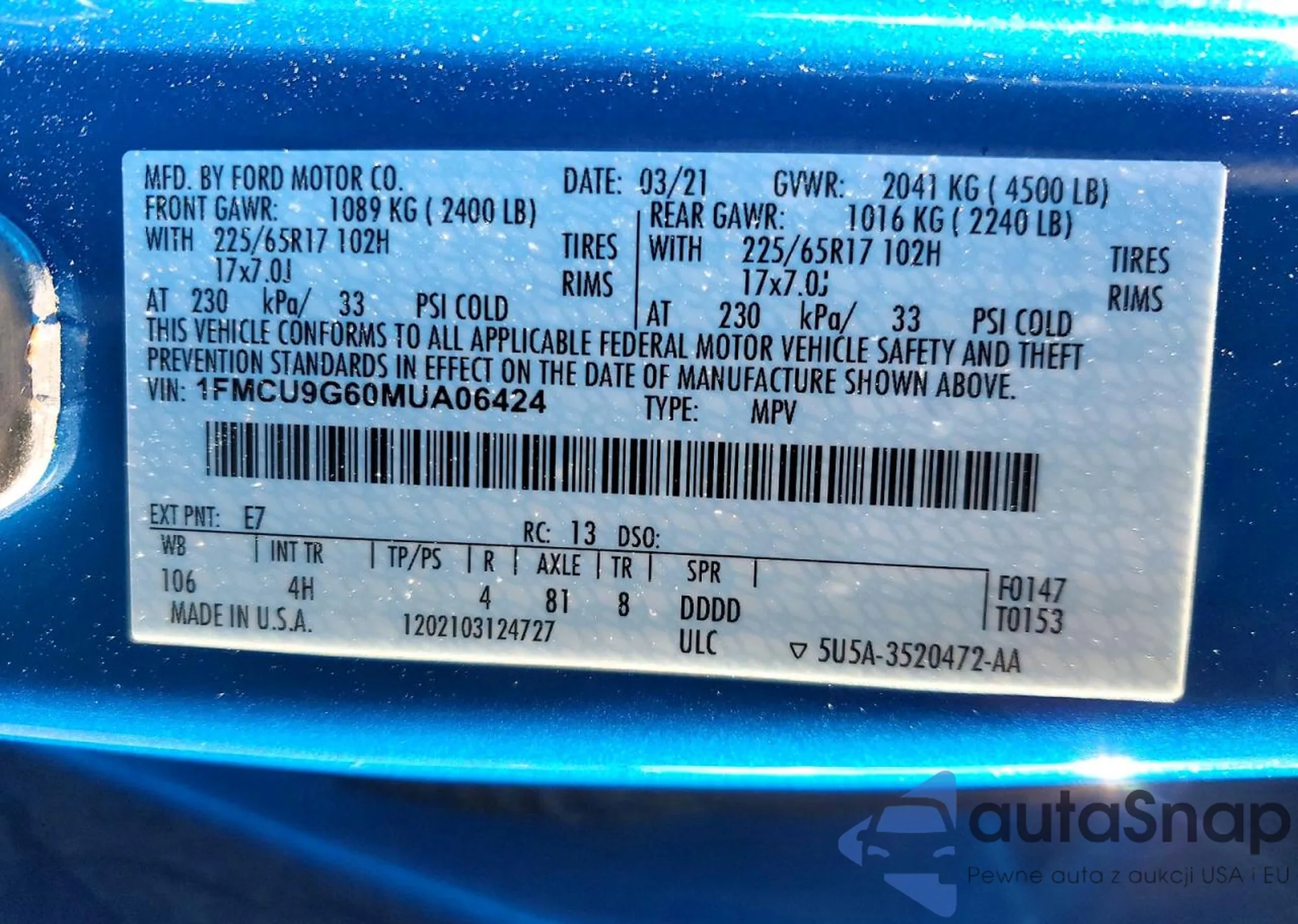LOT: 98908515 VIN: 1FMCU9G63LUB54842