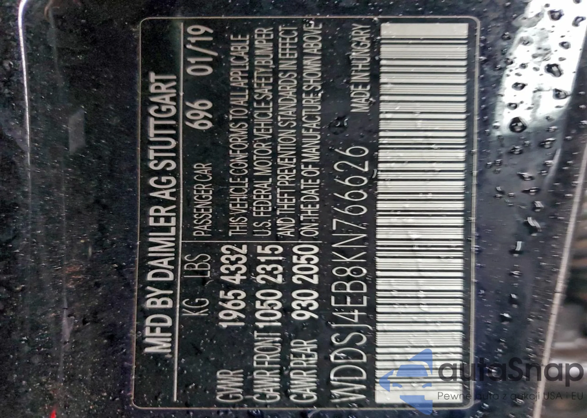 • VIN WDDSJ4EB8KN766626