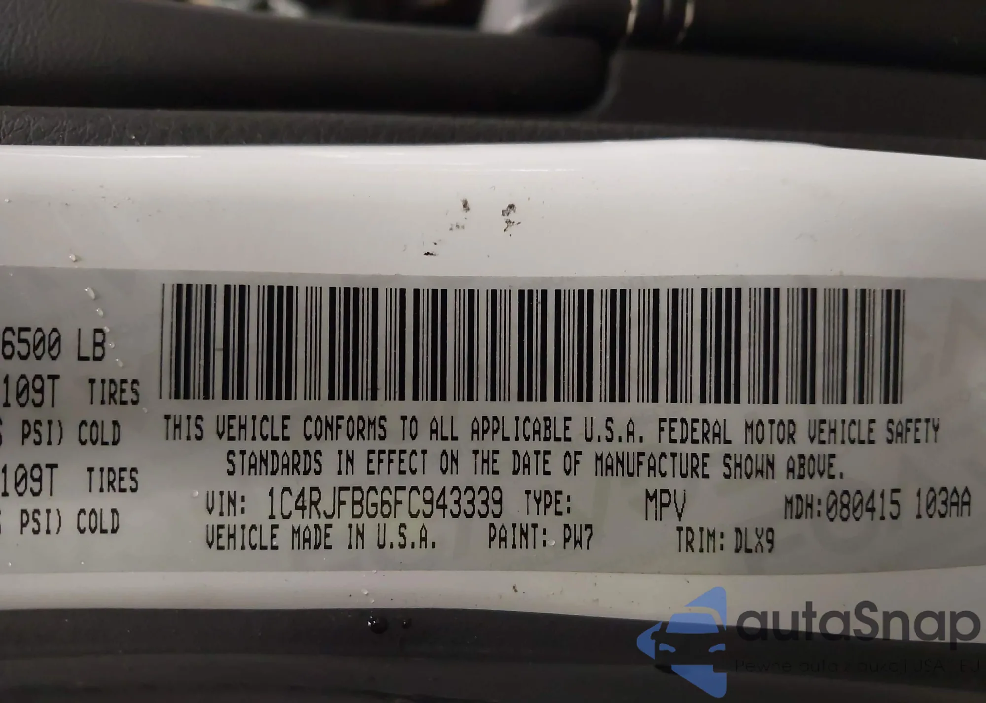 • VIN 1C4RJFBG6FC943339