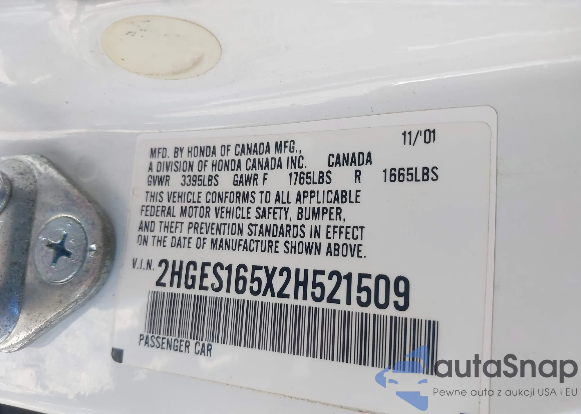 • VIN 2HGES165X2H521509
