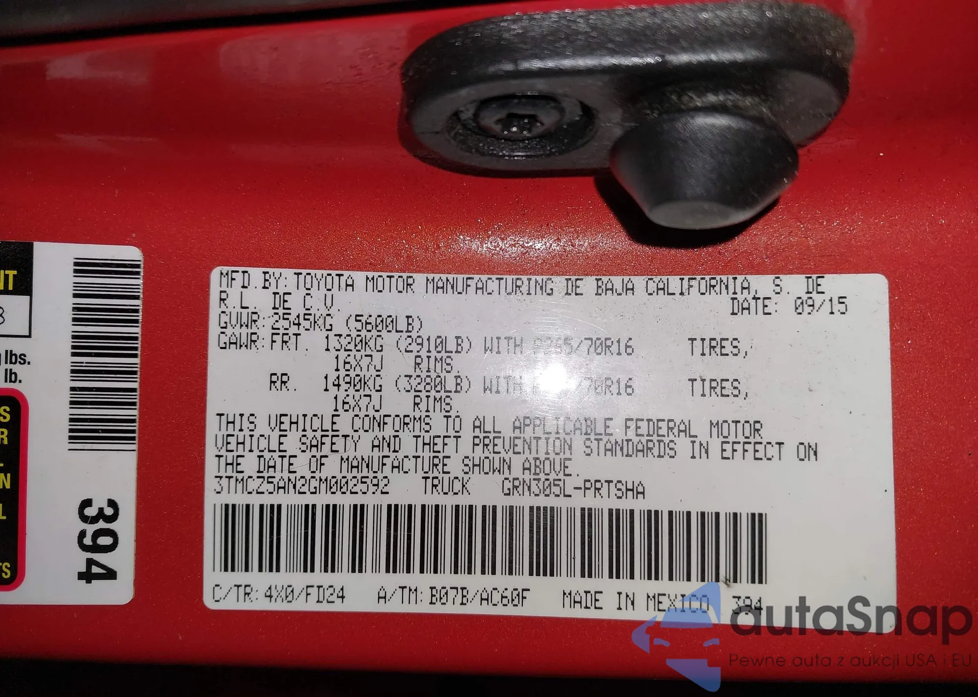 • VIN 3TMCZ5AN2GM002592