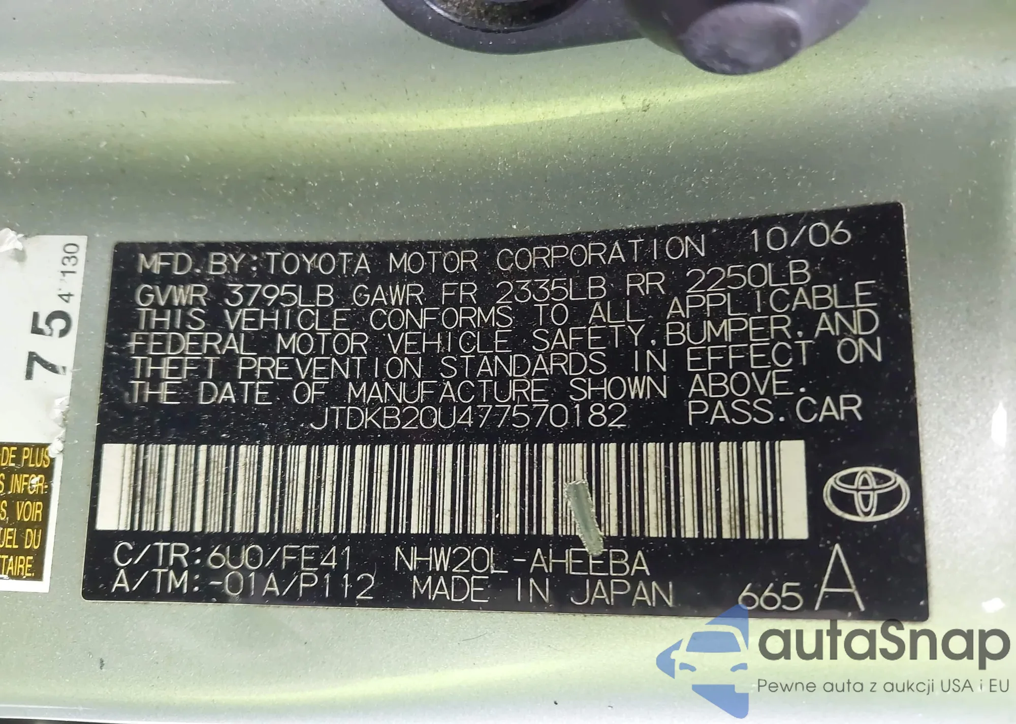 LOT: 44155655 VIN: JTDKB20U477570182