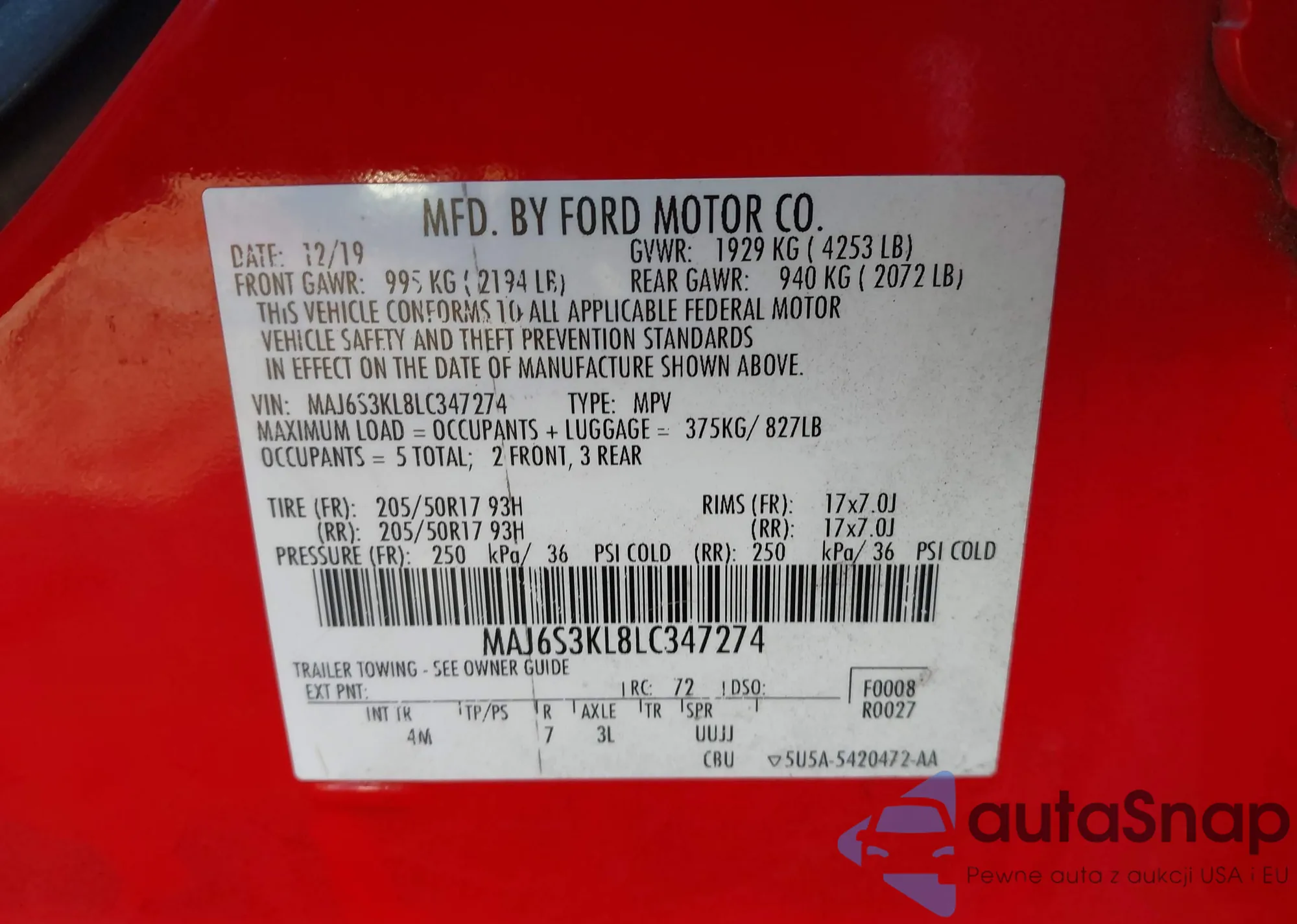 • VIN MAJ6S3KL8LC347274