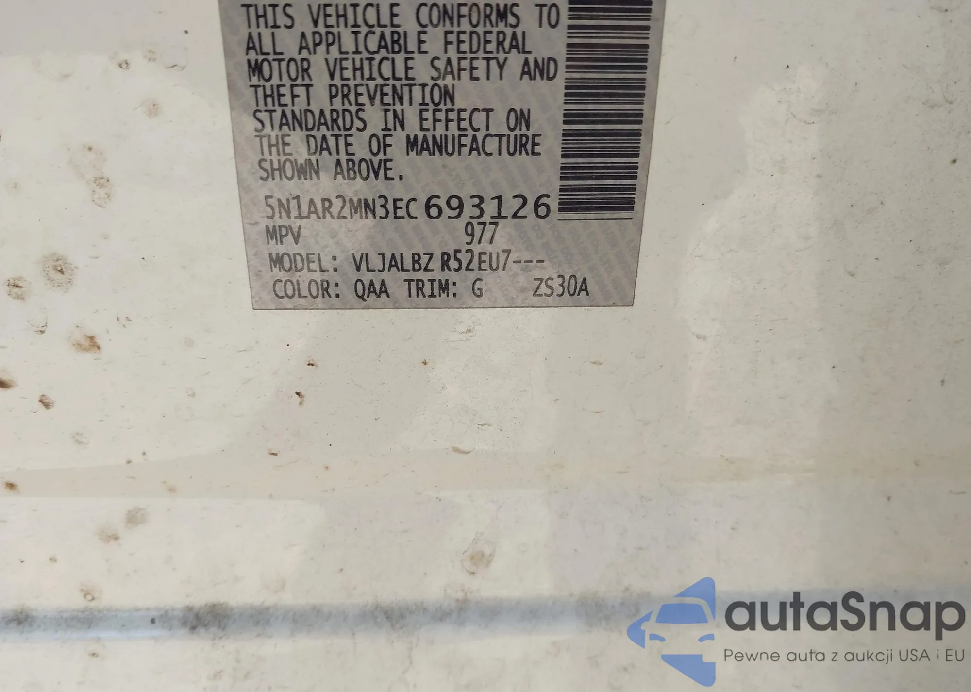 LOT: 43902153 VIN: 5N1AR2MN3EC693126