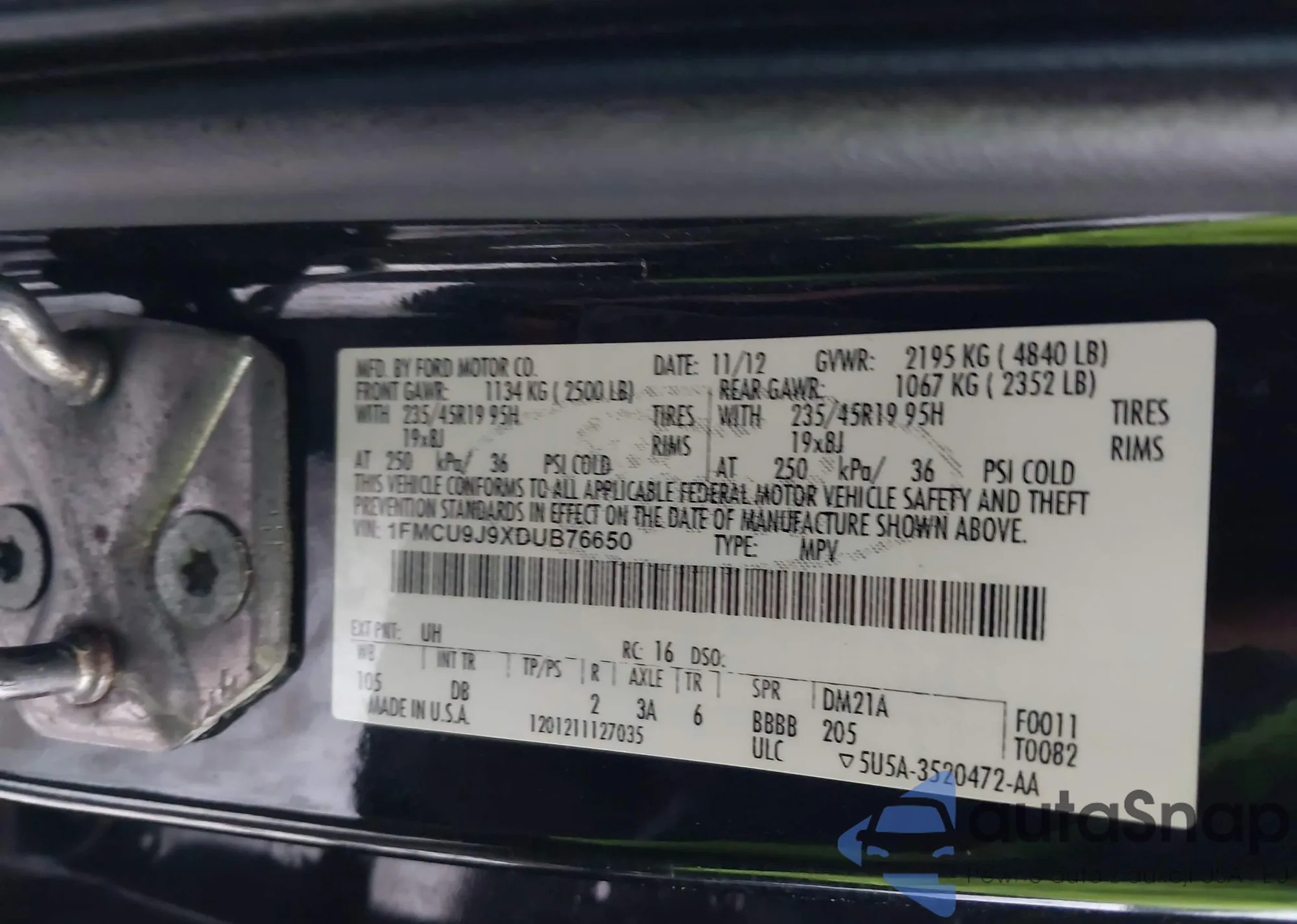 • VIN 1FMCU9J9XDUB76650