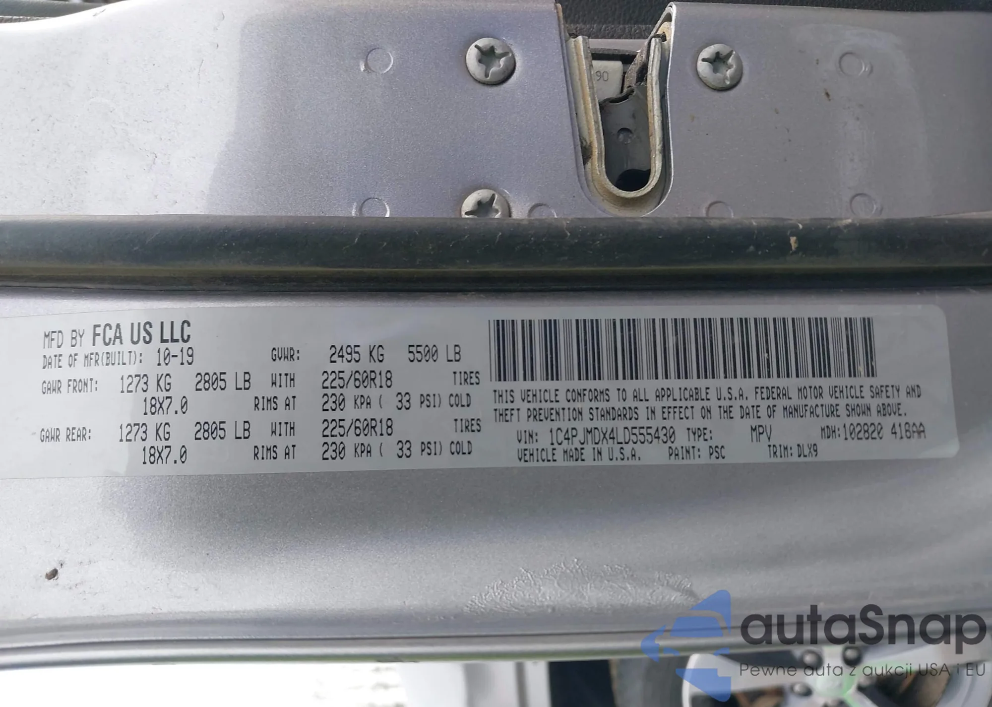 • VIN 1C4PJMDX4LD555430