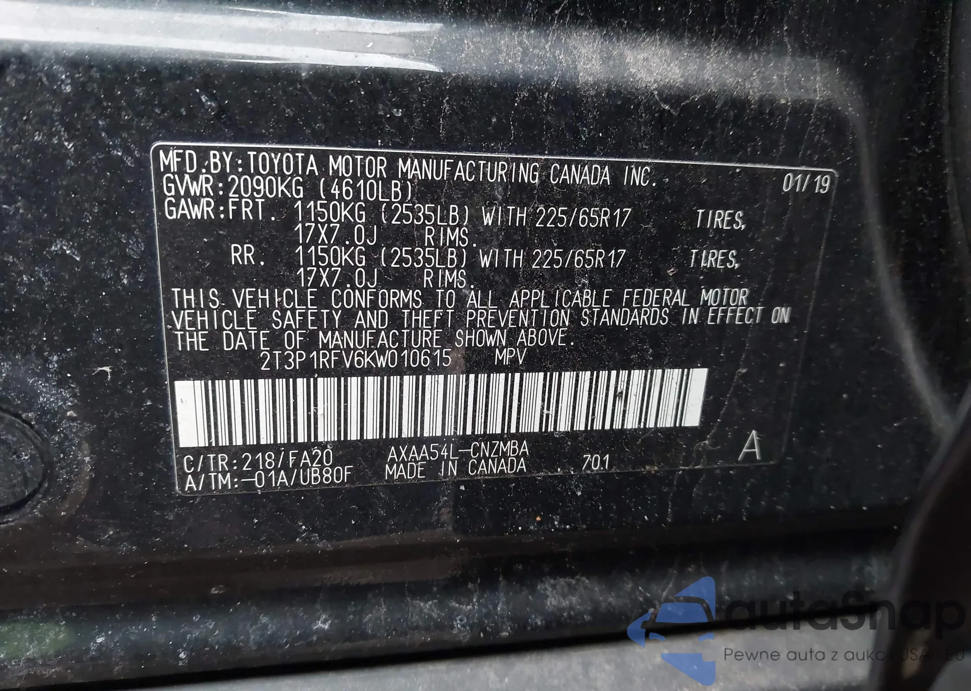 • VIN 2T3P1RFV6KW010615