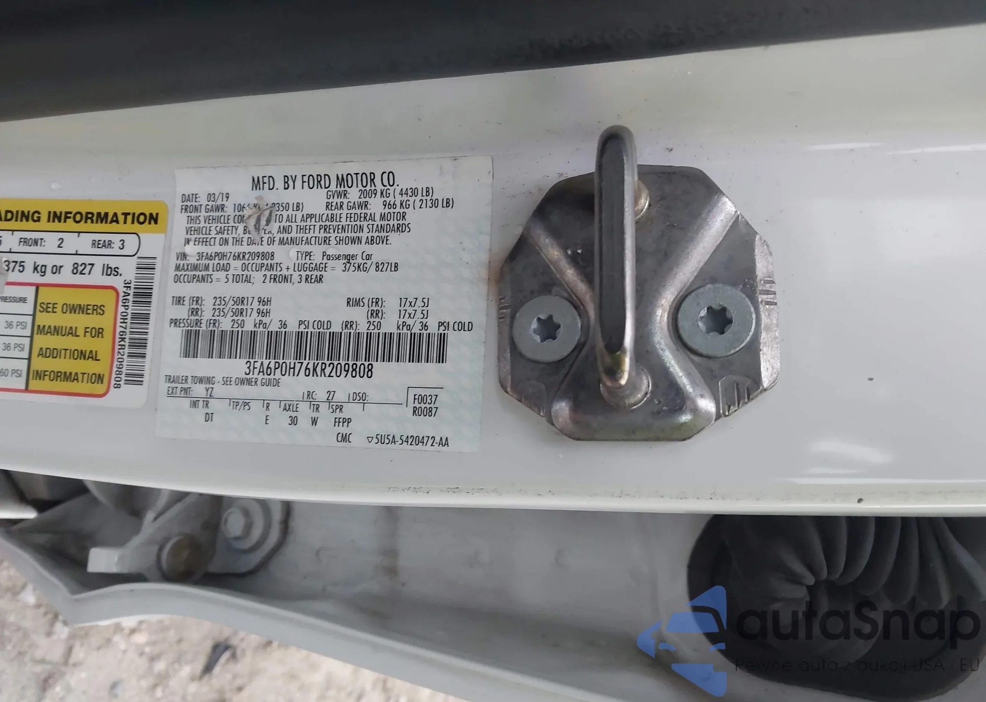 LOT: 44149746 VIN: 3FA6P0H76KR209808
