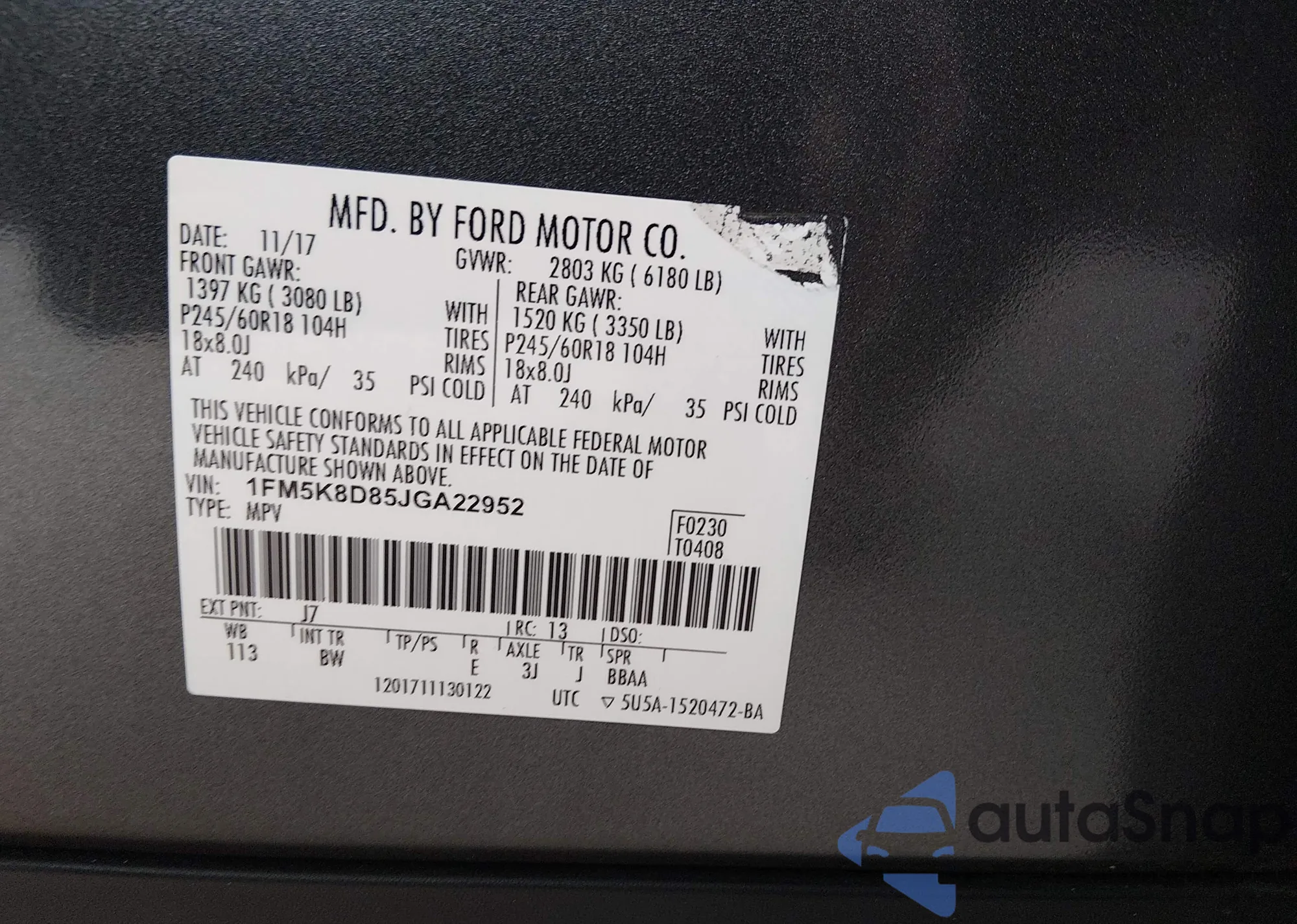 • VIN 3FA6P0H76KR209808