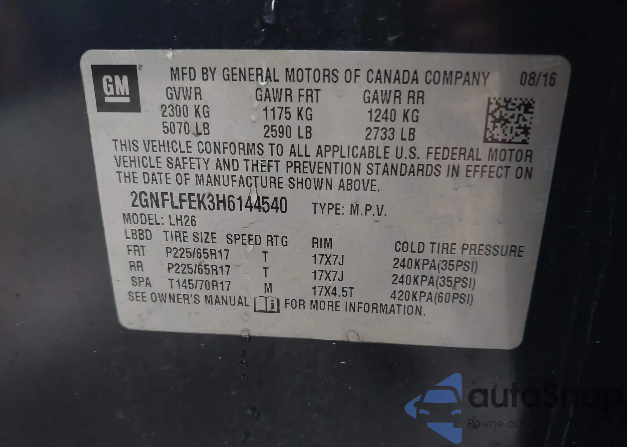 • VIN 2GNFLFEK3H6144540