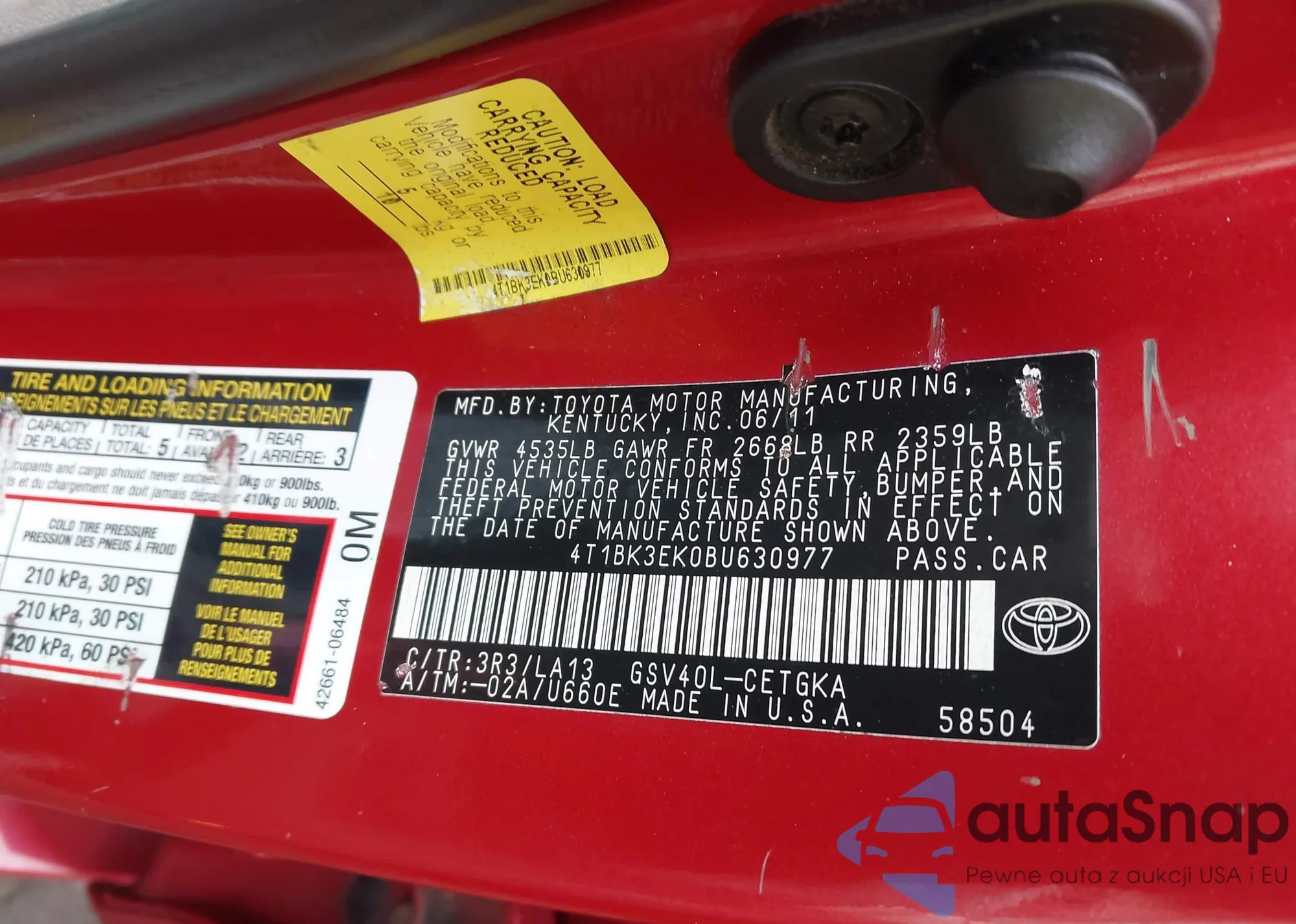 LOT: 44162351 VIN: 4T1BK3EK0BU630977
