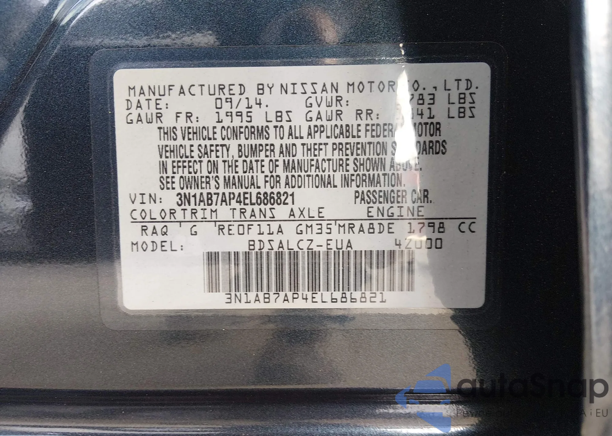 • VIN 3N1AB7AP4EL686821