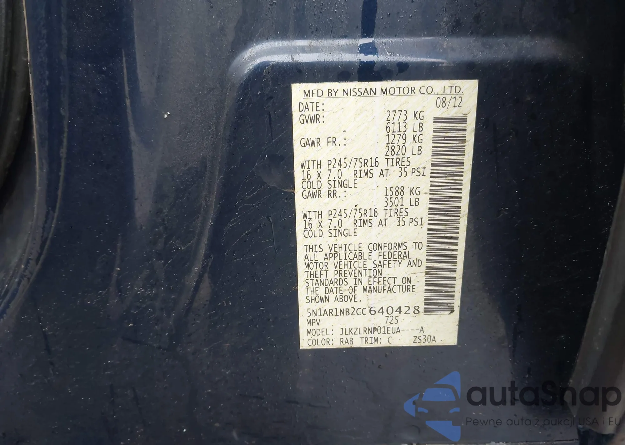 • VIN 5N1AR1NB2CC640428