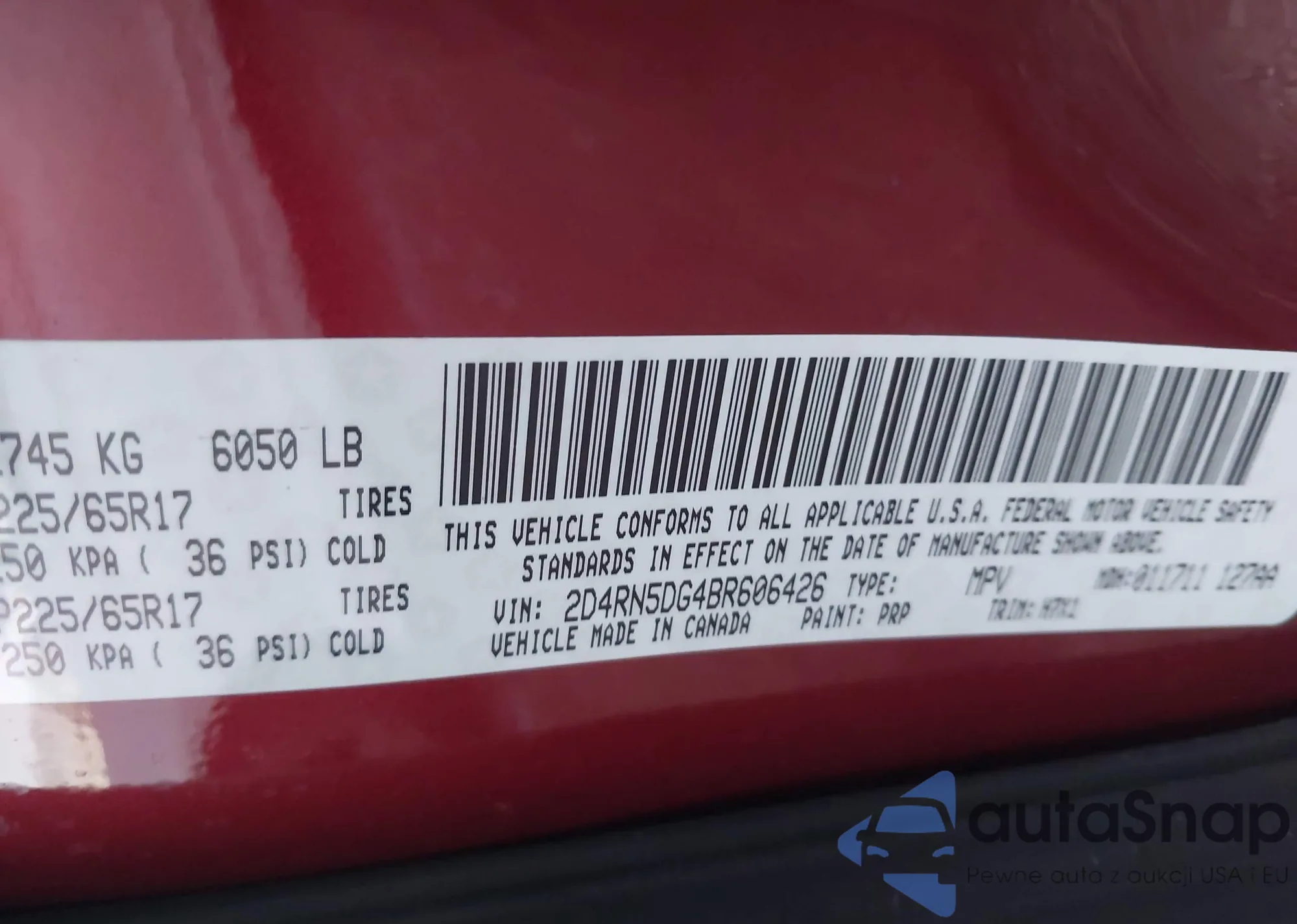 • VIN 2D4RN5DG4BR606426