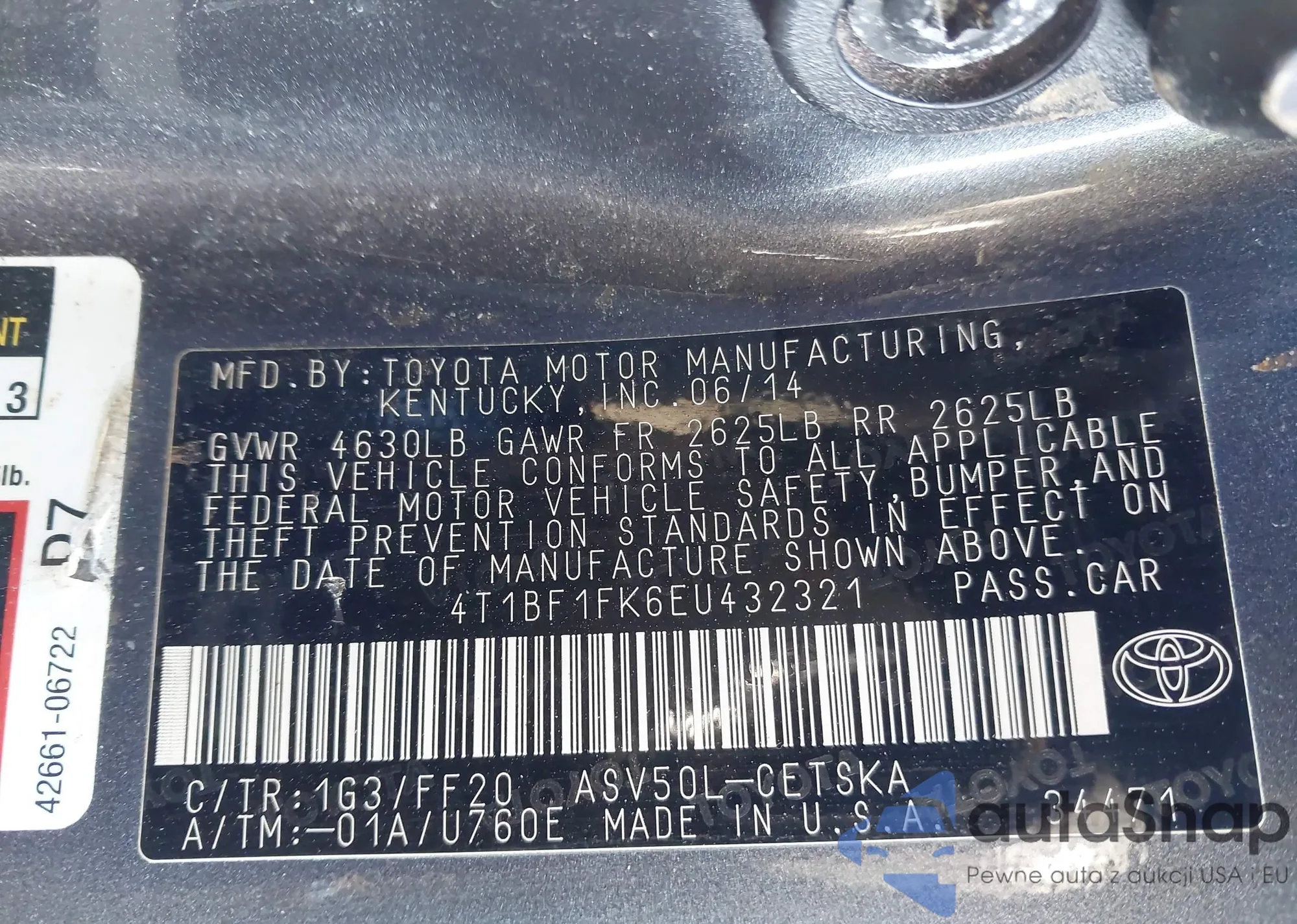 • VIN 4T1BF1FK6EU432321