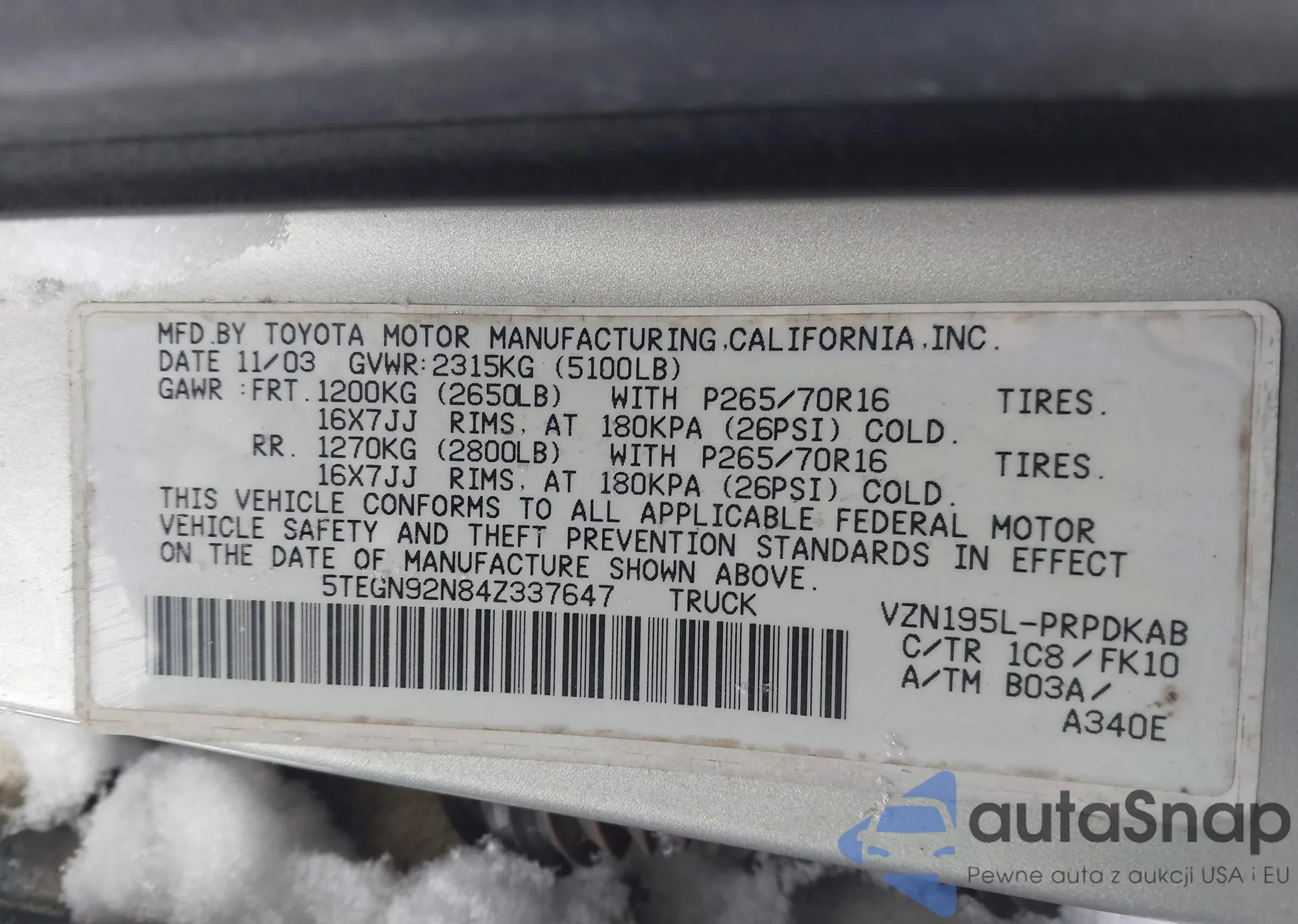 • VIN 5TEGN92N84Z337647