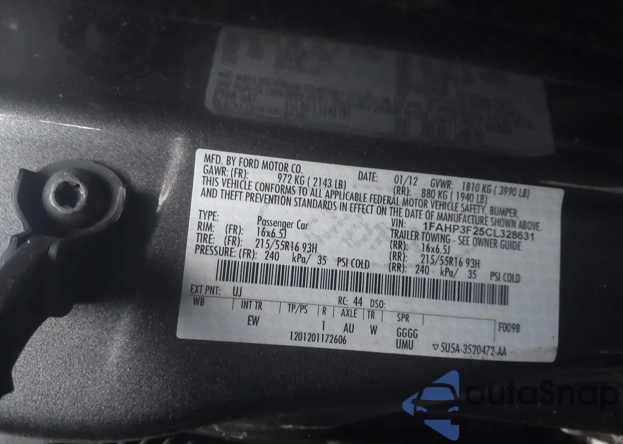 • VIN 1FAHP3F25CL328631