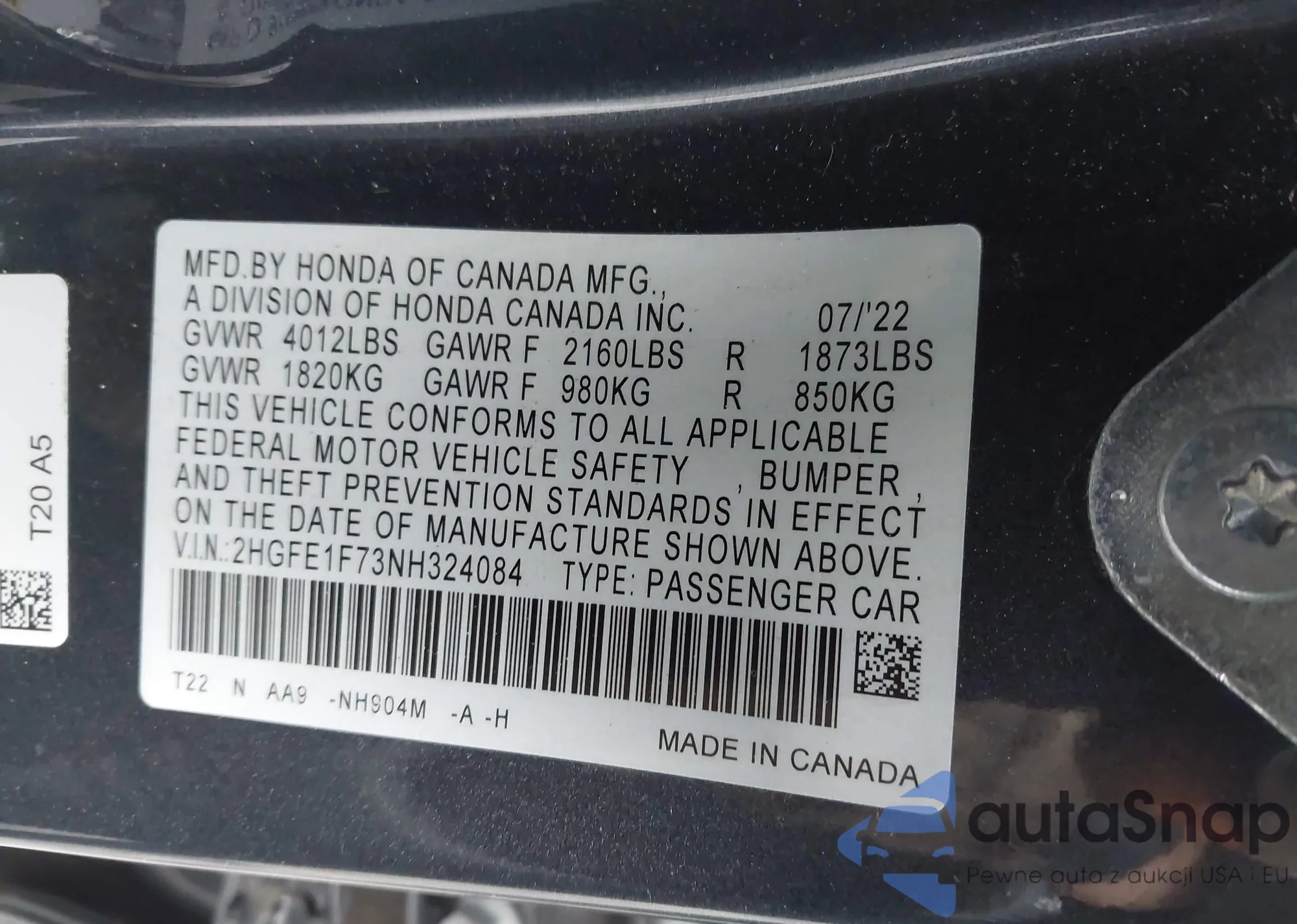 • VIN 19XFC1F70HE032221