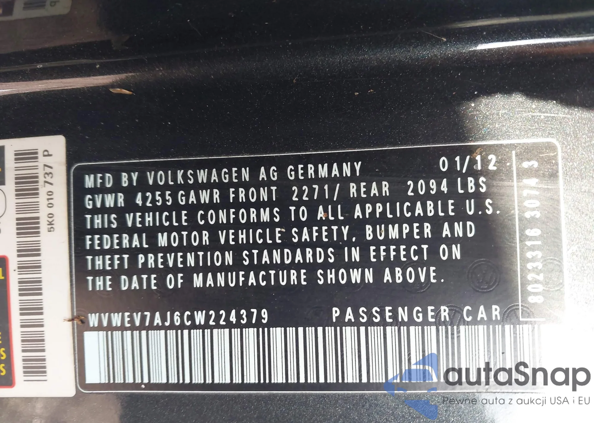 • VIN 1HGCP3F81CA013766