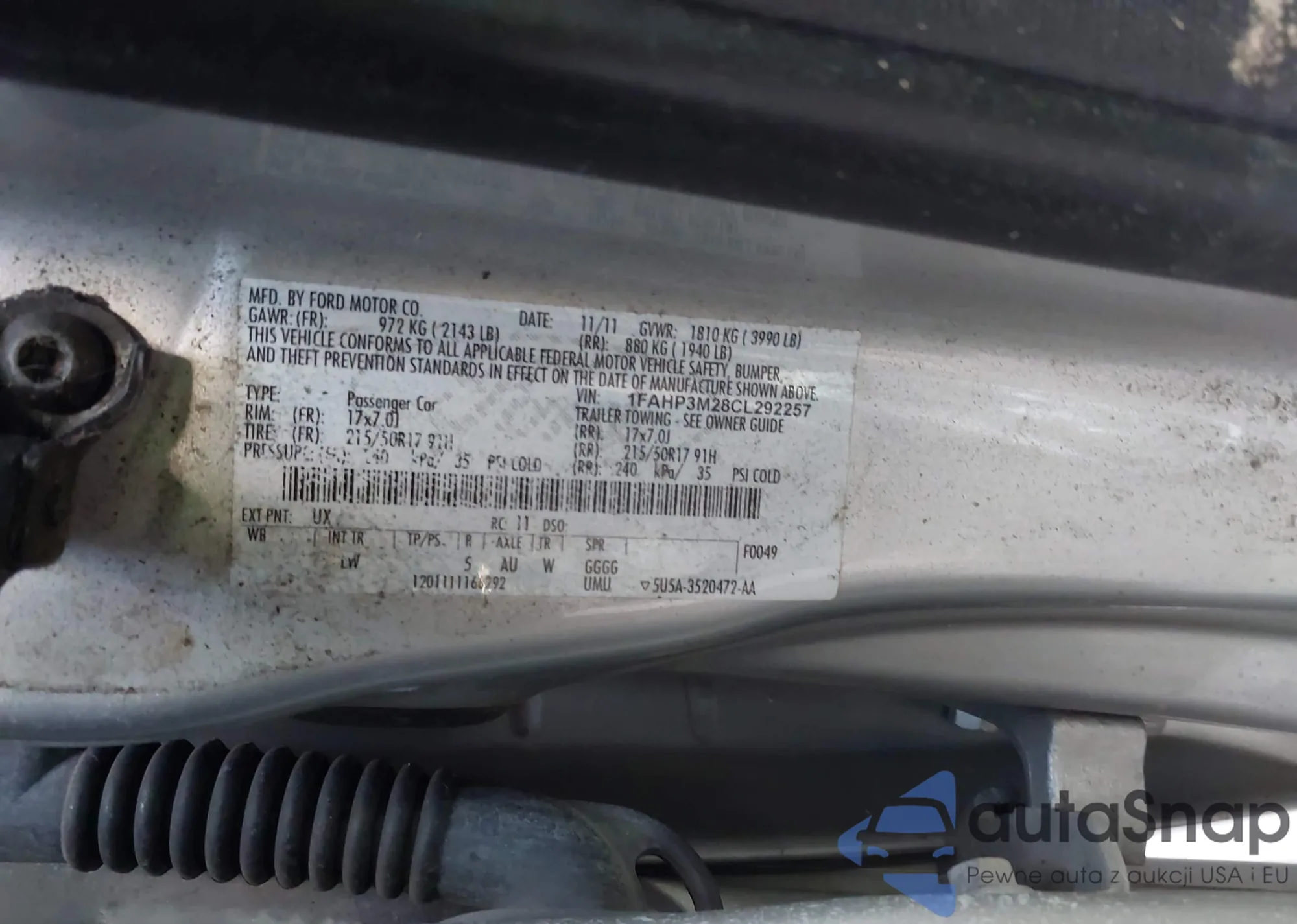 LOT: 43689873 VIN: 1FAHP3M28CL292257