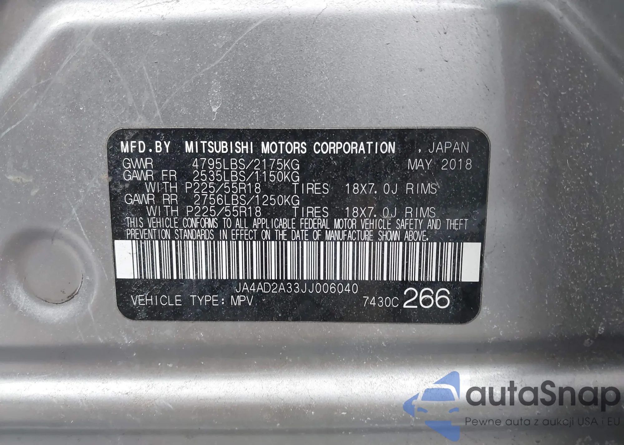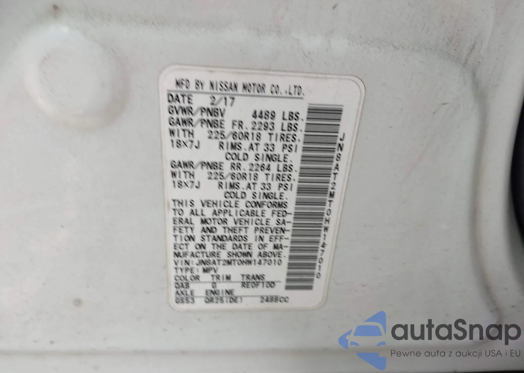 LOT: 44227425 VIN: JN8AT2MT0HW147010