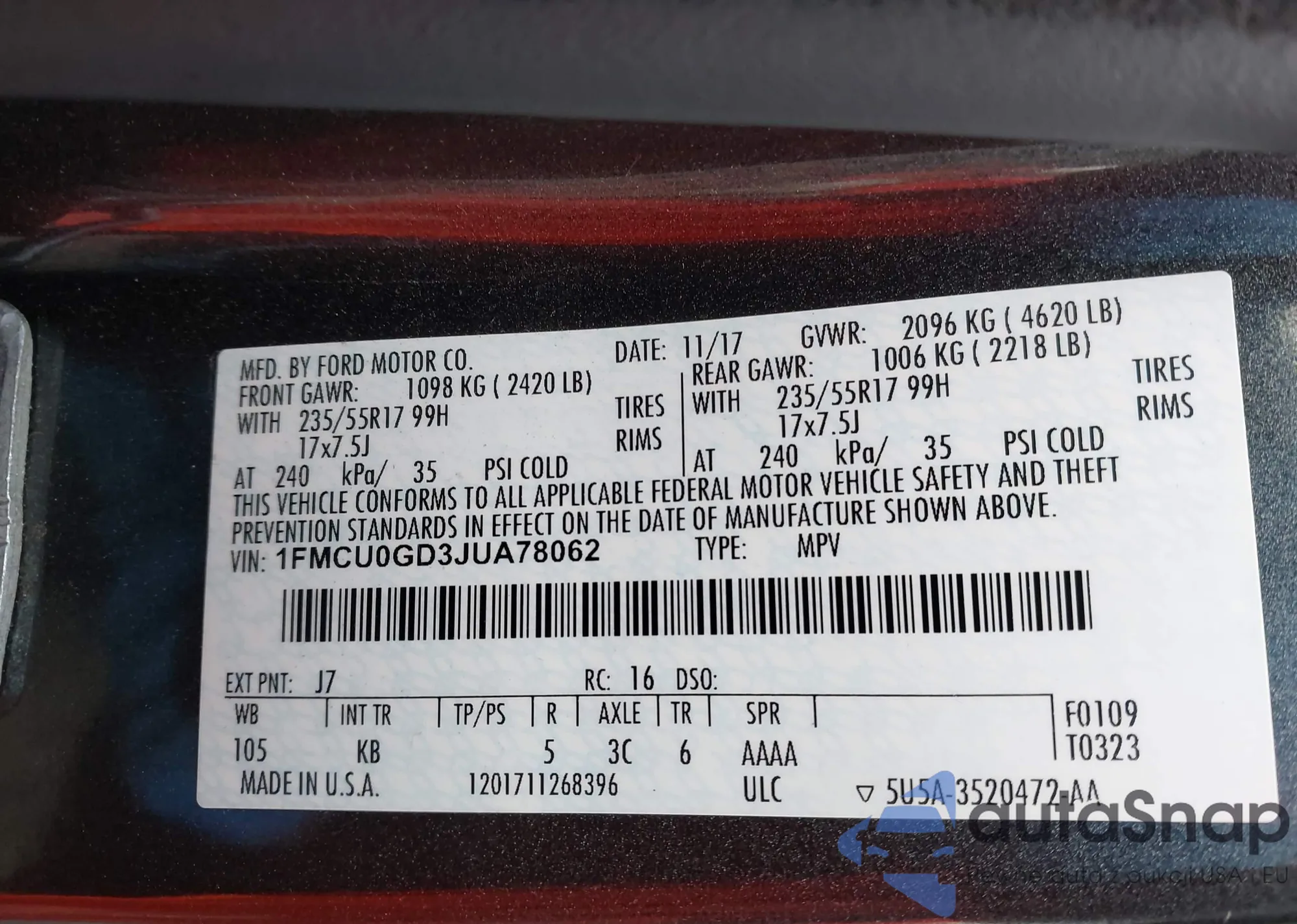 • VIN 1FMCU0GD3JUA78062