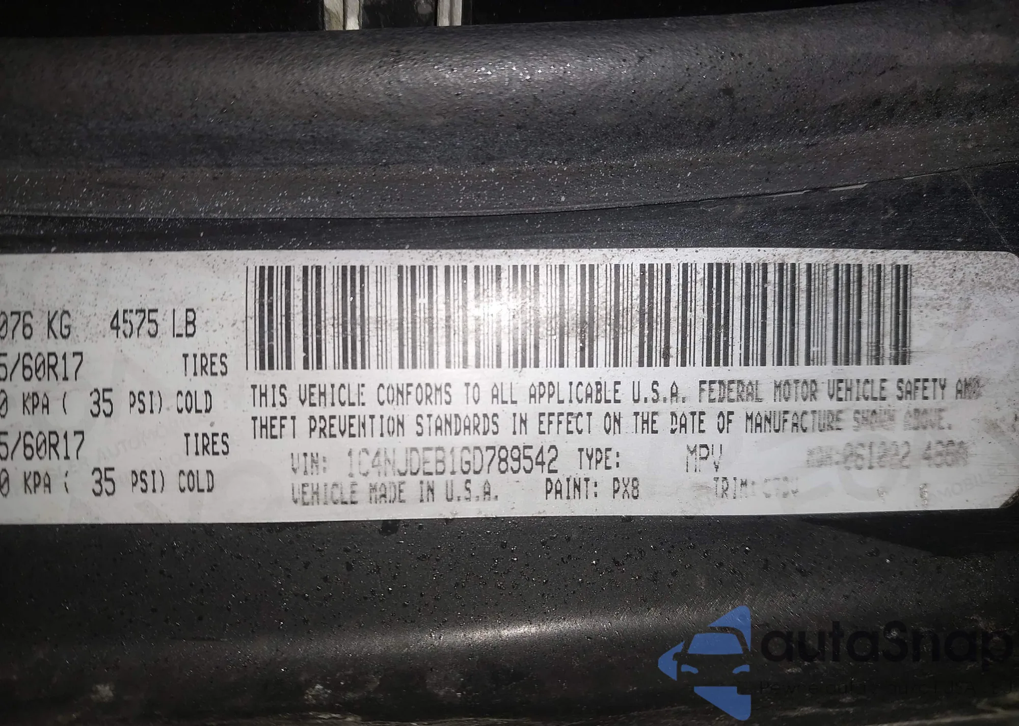 • VIN 1C4NJDEB1GD789542