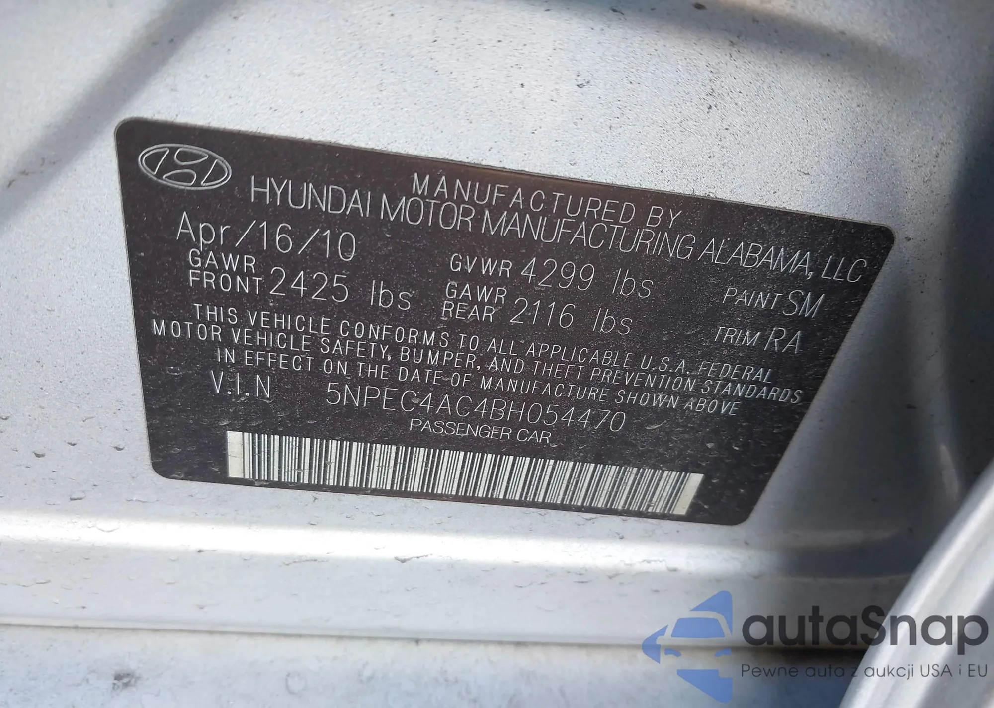 • VIN 5NPEC4AC4BH054470
